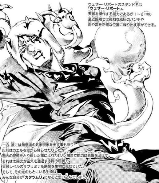 破壊力スピードA相当とはいうけどスピードBのストーンフリーとウェザーリポートに圧倒されてる辺り破壊力もスピードもB中〜下位くらいが妥当な気がする、それなら射程20mでもまあ頷けなくもない