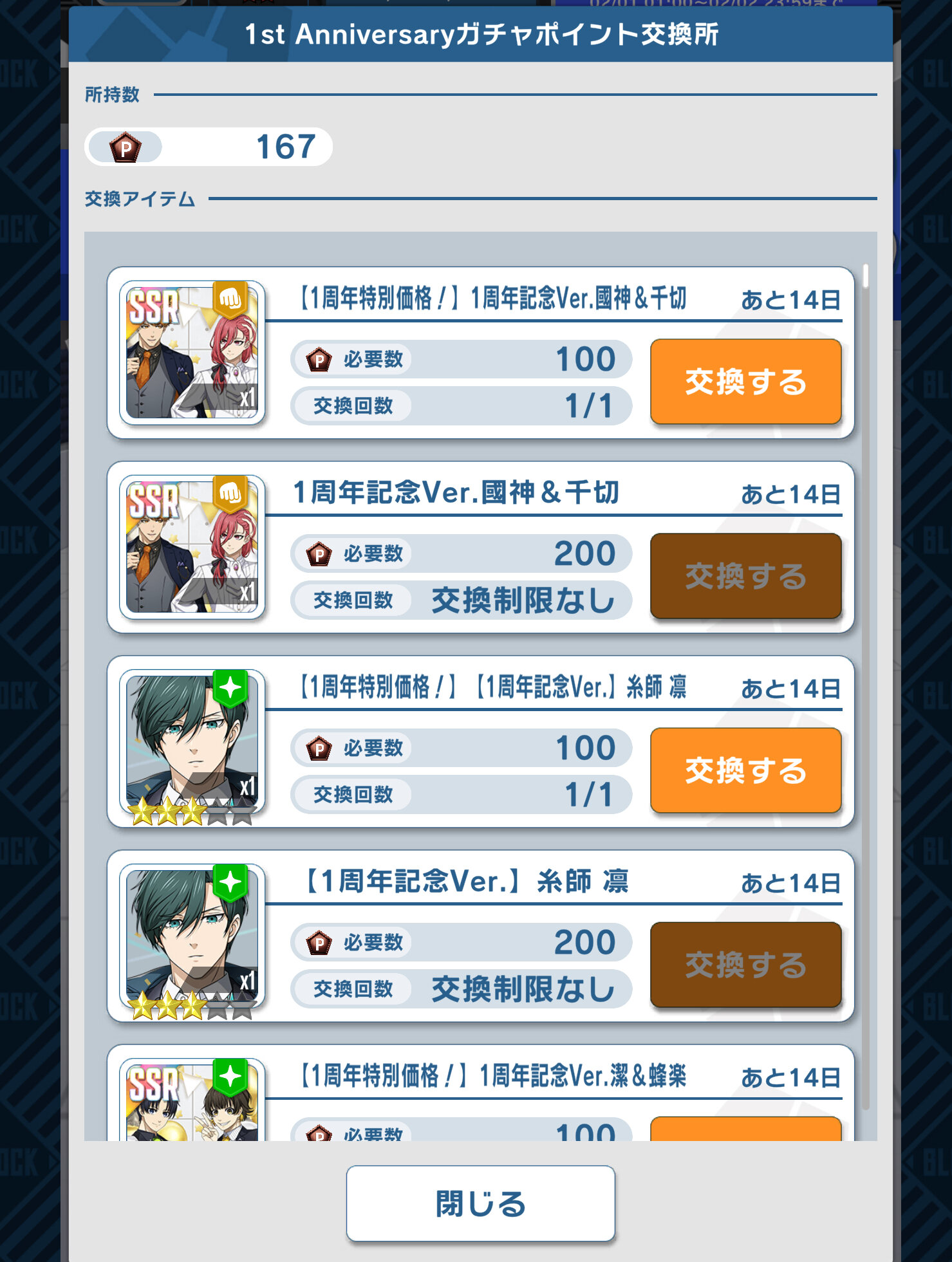 あと凛と周年玲王会話イベで下を選ぶと今回のミッションでいる活溌がとれるからそれ狙いで交換してもいいかも