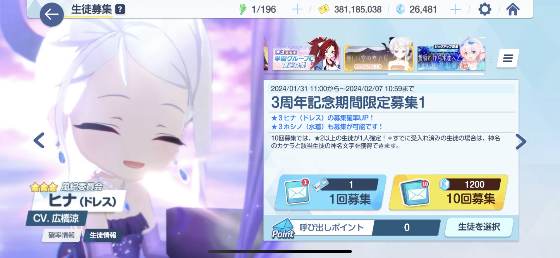 まあ正直3.5までに貯めれればいいし本気で欲しい生徒来て天井で取れるなら俺は大人のカード使うから行っても……いいんだよね?
