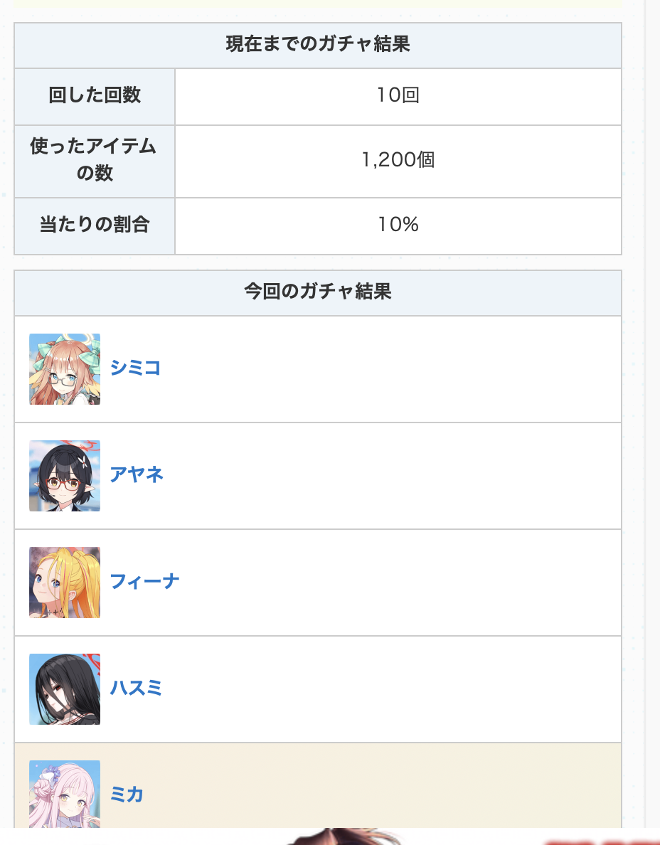 俺もヒナはいっぱい当たったがミカは当たんなかったんだ