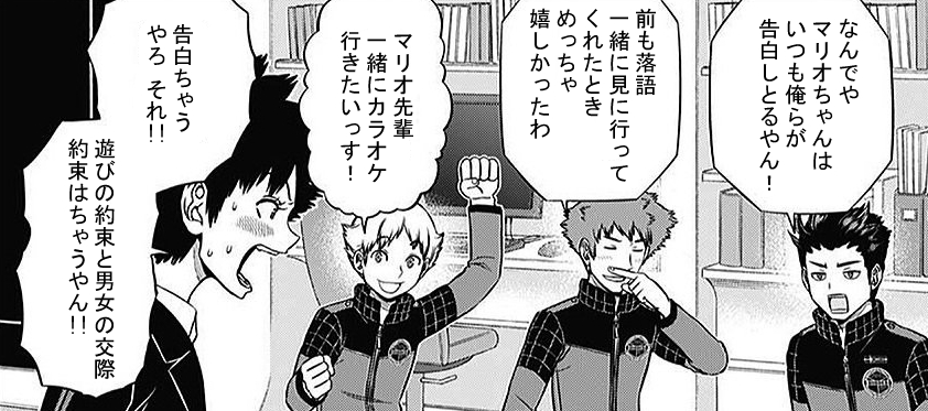 見た目も中身もイケメンだが異性相手に極度に緊張してしまい、女性相手にアワアワオドオドしてしまう可愛らしい様が描写されてからはワートリあざとさNo.1の呼び声高い。さらにBBFのモテ度グラフでちょっとモテたい側に位置しているのがまた可愛らしい。遠征選抜試験でも心配されつつ面白がられている。 - 60二次元好きの匿名さん22/01/27(木) 02:10:40