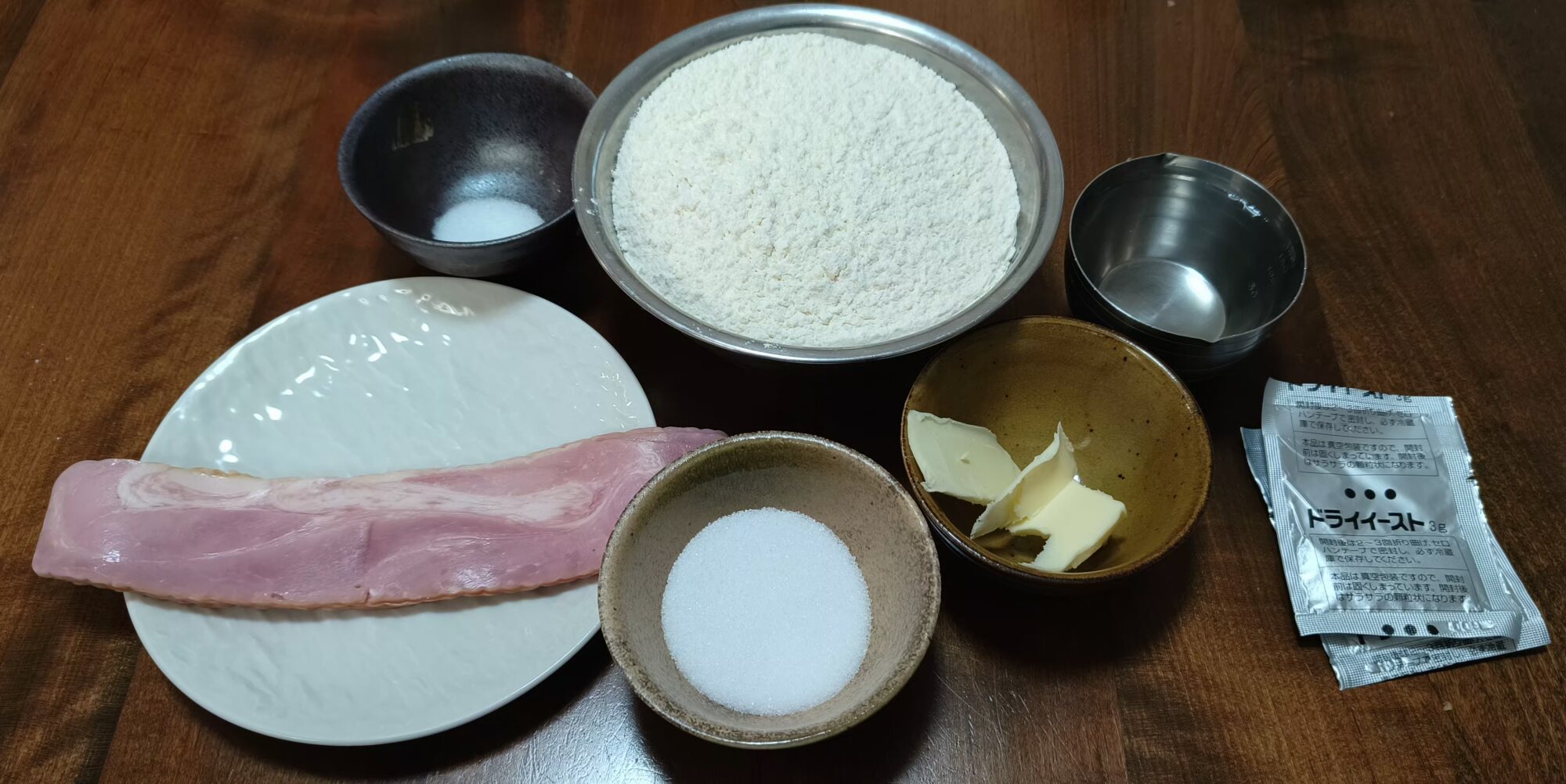エピの作ったベーコンエピwwwっていうネタをやるためだけに強力粉とドライイーストを買ったら数ヶ月経ったので期限が切れる前に小麦粉を400g使って作りました。合計3時間かかったけど初めてにしては良い出来だったのでOKです。