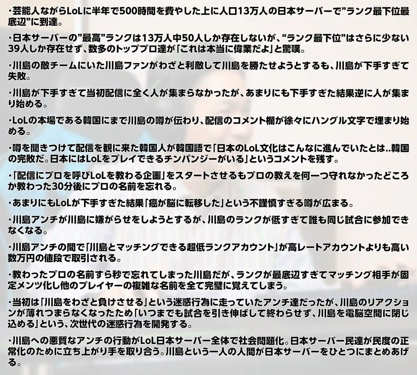 数年間やり続けても最低ランク脱出できないくらい無能しか来ないなんてLoLってのは結構ハードなゲームなんだな