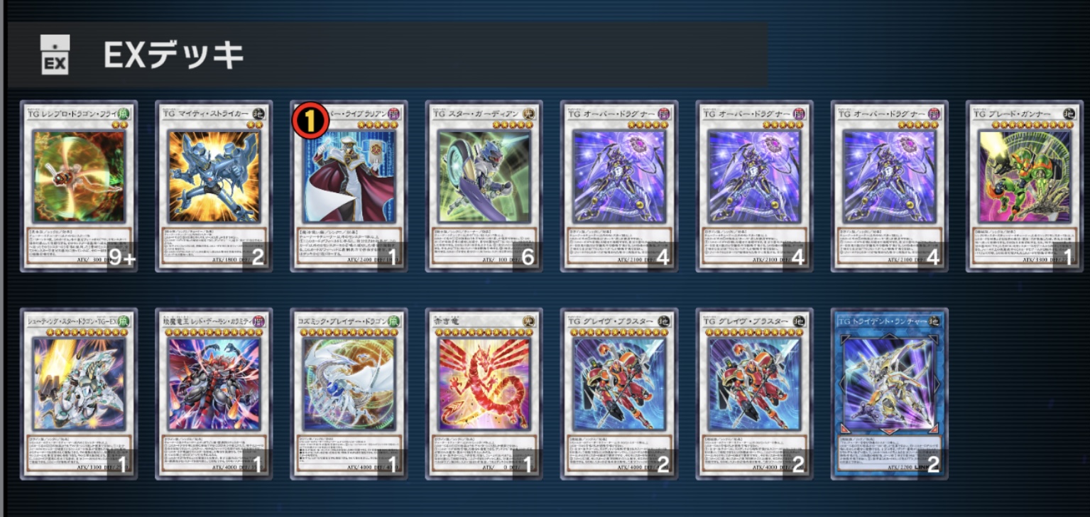 シューティングスタードラゴンTG EXは私と遊星の絆のカード!TGデッキを組むのならこのカードを入れるとは義務だ!そうだな遊星!私はこのカードを入れていないデッキをTGとは認めない!断じてだ!