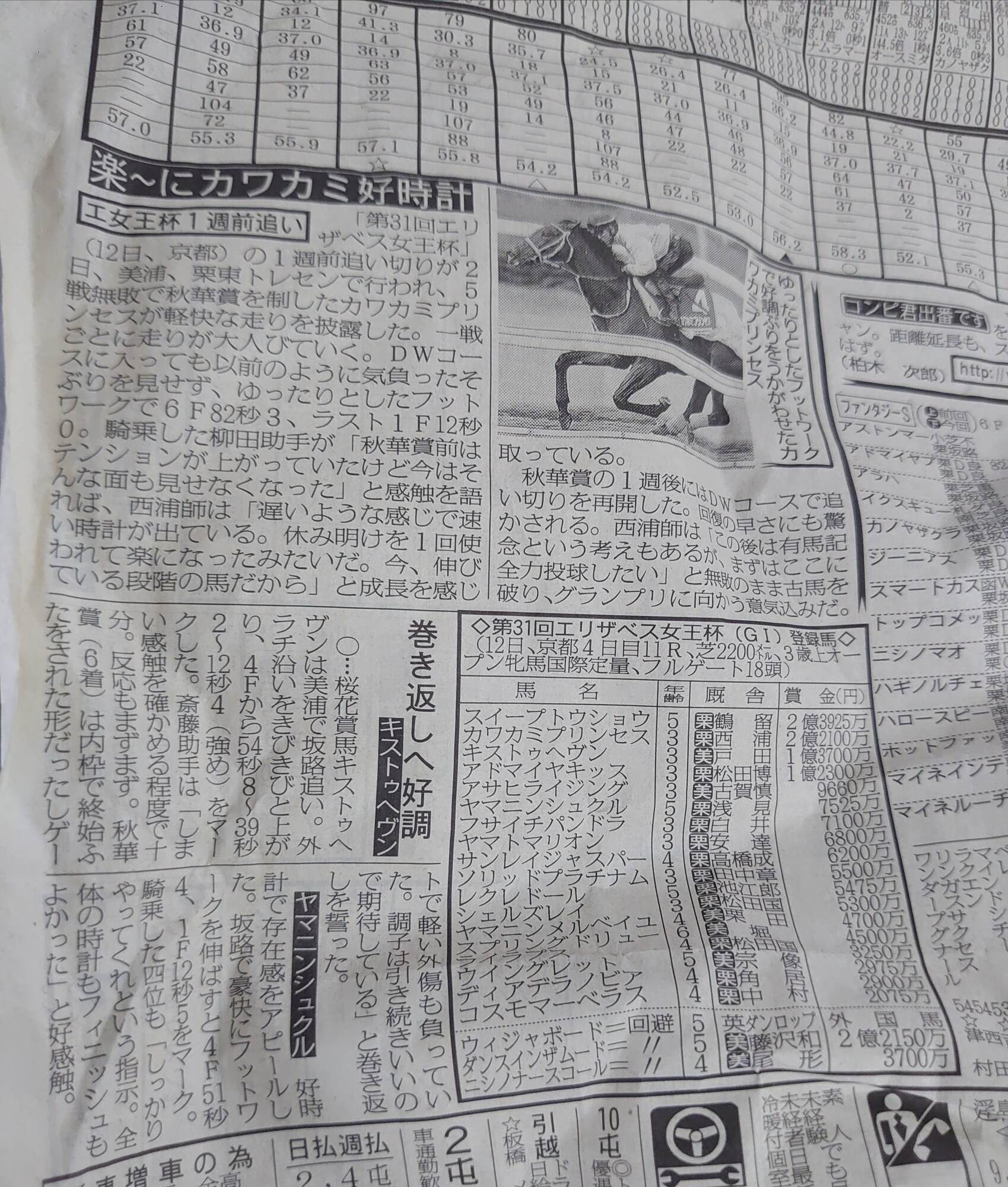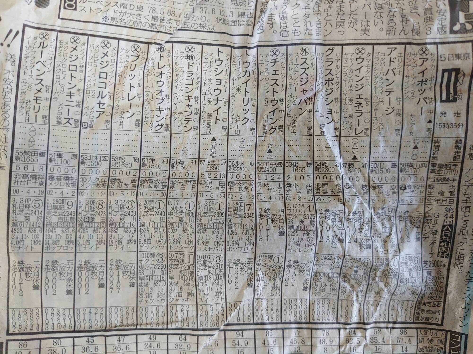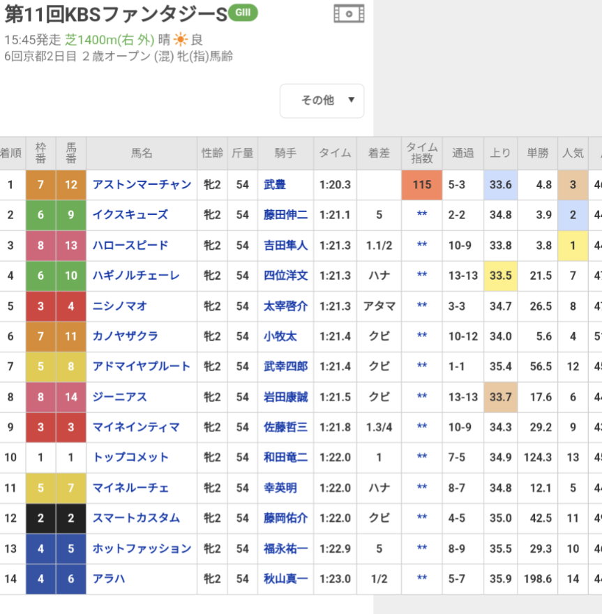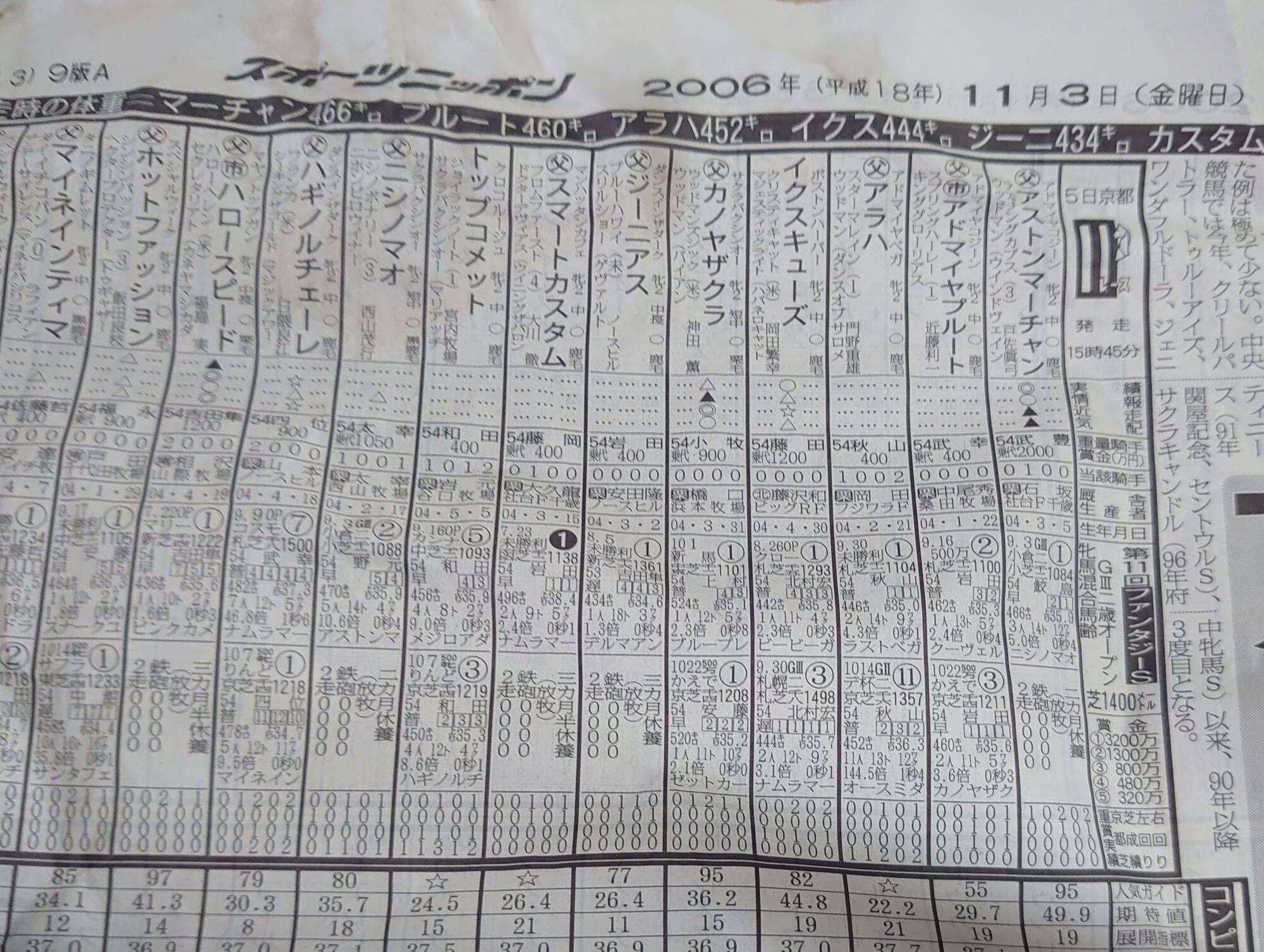 これってファンタジーステークスの時の出馬表?