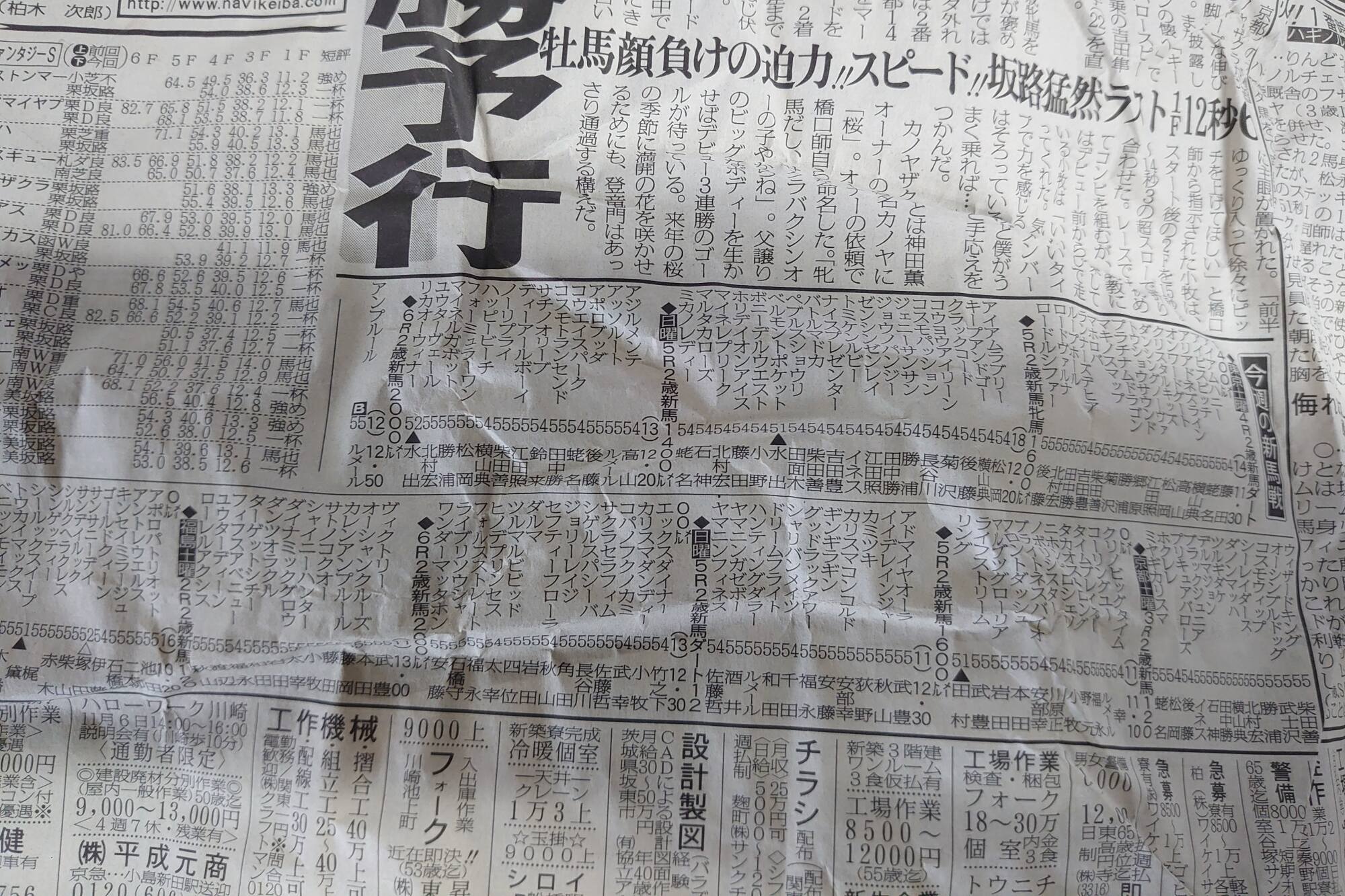 この前梱包材の新聞紙からワグネリアンの新馬戦後の記事が出て来た