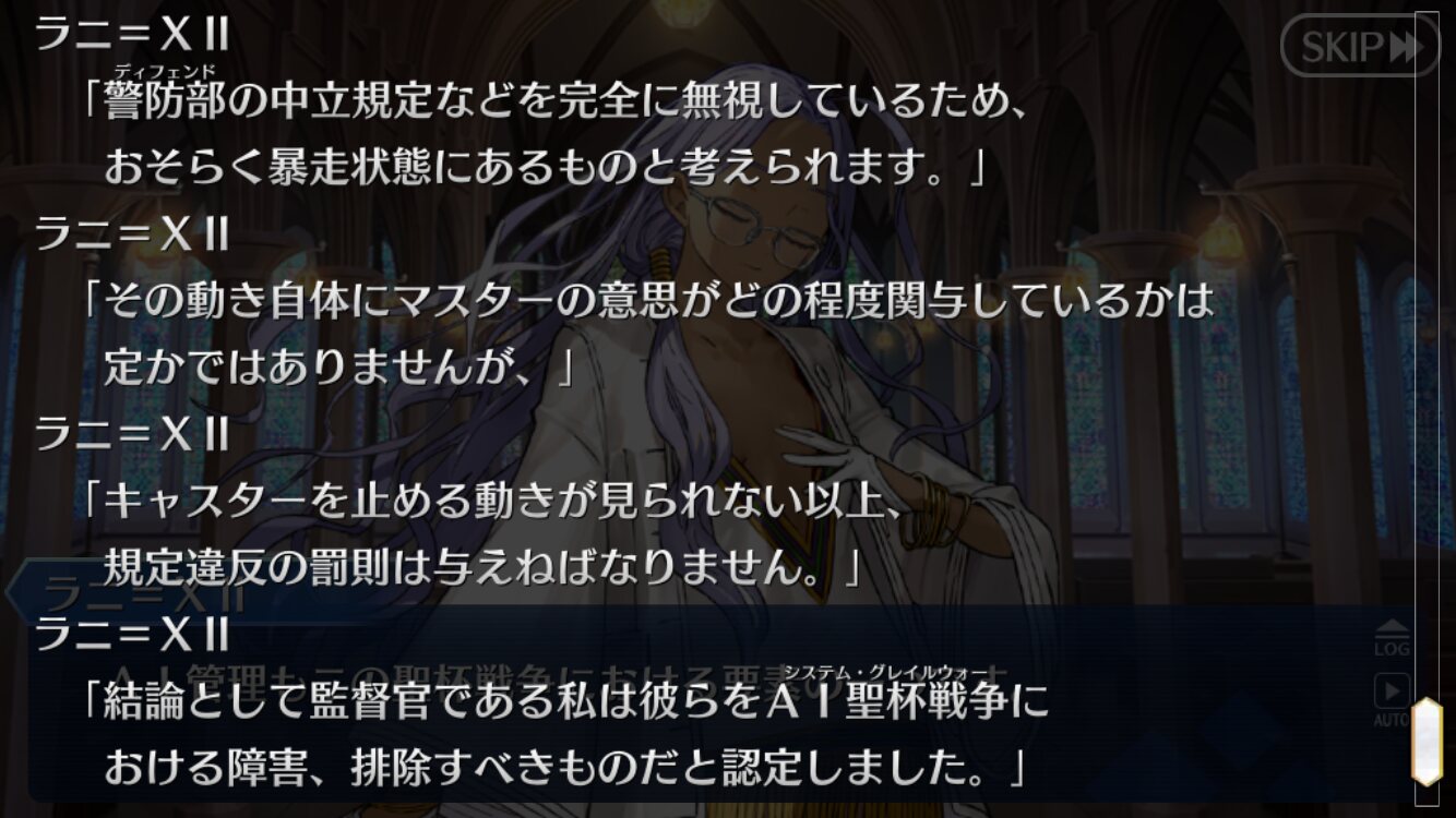 あー、この展開ZEROで見たわ〜。周囲の迷惑考えずに好き勝手始めたキャスター陣営に対抗すべく、中立な聖堂教会が全てのマスターに共同してキャスターを倒すように司令するやつじゃーん!ZEROだと協力者に令呪渡してたけど、ここだとラニメントなのかな〜?とか思ってたけど、中立地帯が襲われるのはダメじゃん!!!!!!!