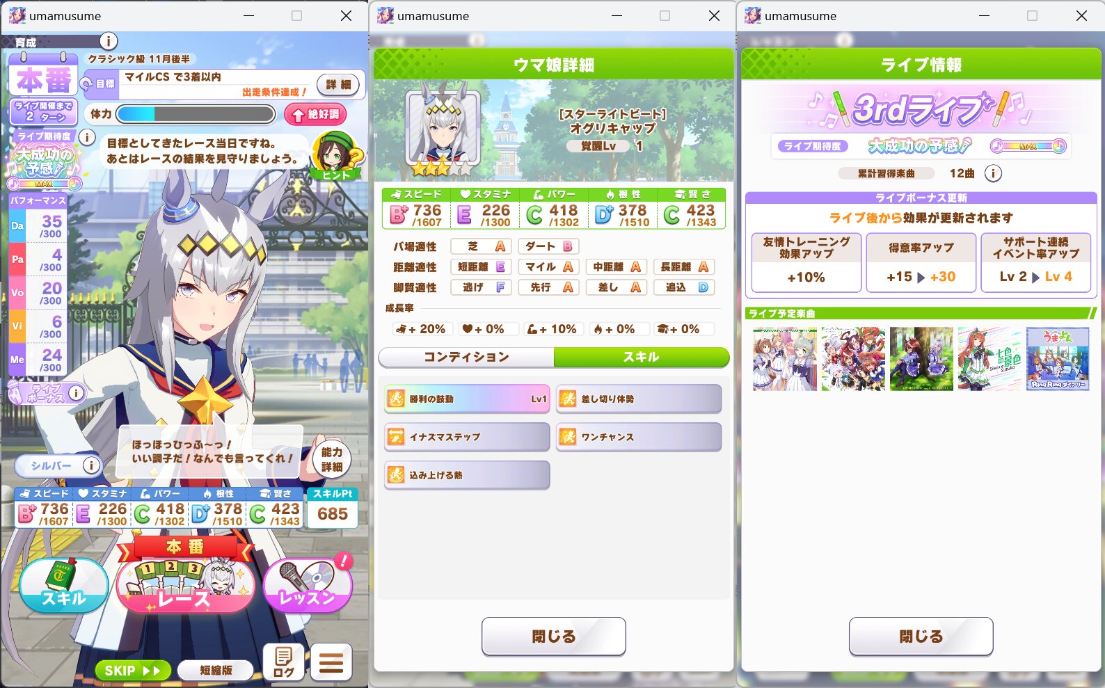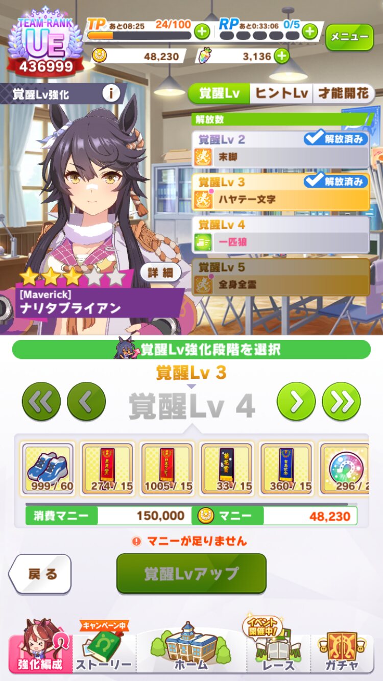 ただ当然覚醒レベルを上げるためには大量の素材が必要(距離に応じた靴・優勝レイ・虹色の玉・マニー)が必要になるので特に最初のころは厳選が必要になる - 10みんなの1◆jAda3nB98w24/02/11(日) 19:44:34