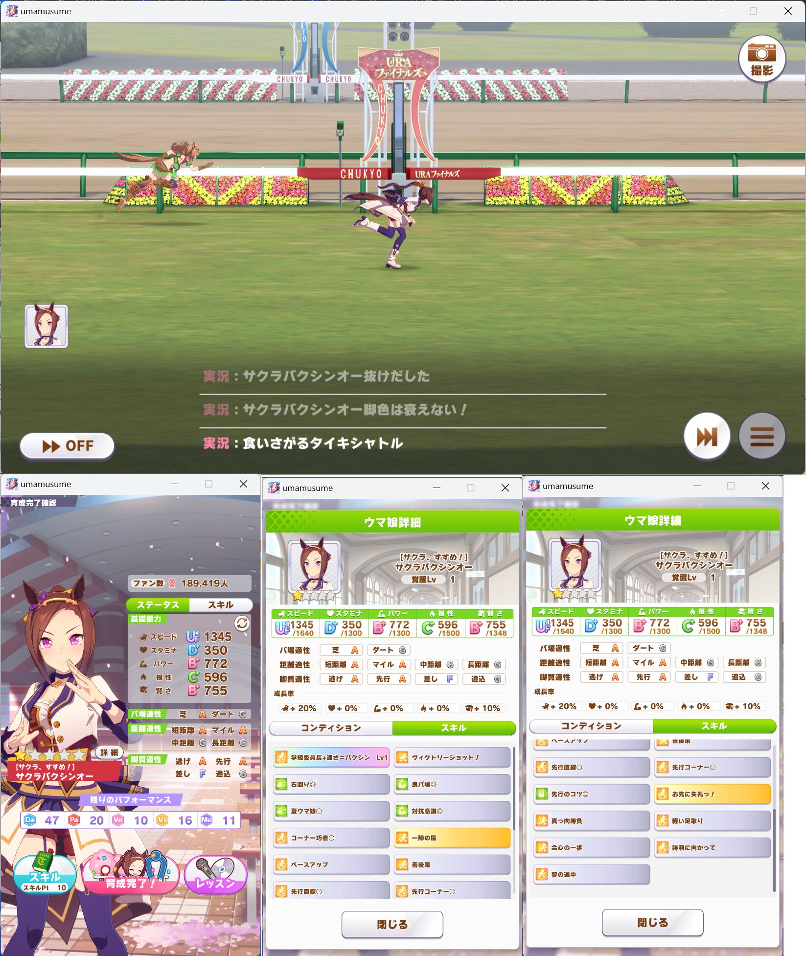・(卒業試験枠?)ナイスネイチャの個別育成「全勝」制覇