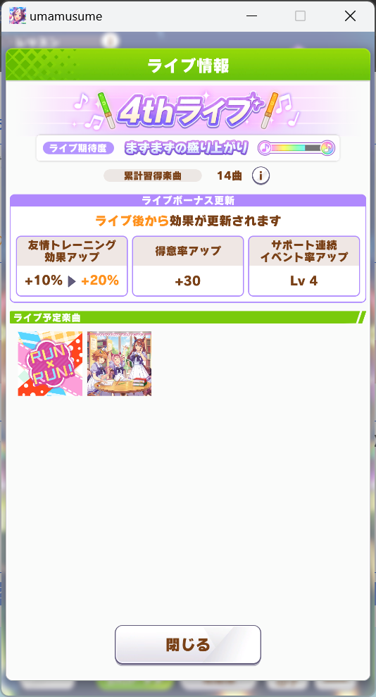 ・全育成シナリオの制覇!(残りはL'Arcのみ)