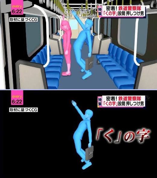 座席に座っている状態だと肘で胸を触り続けるとか女性と自分の太ももの間に手を挟むとかのパターンもあるらしい