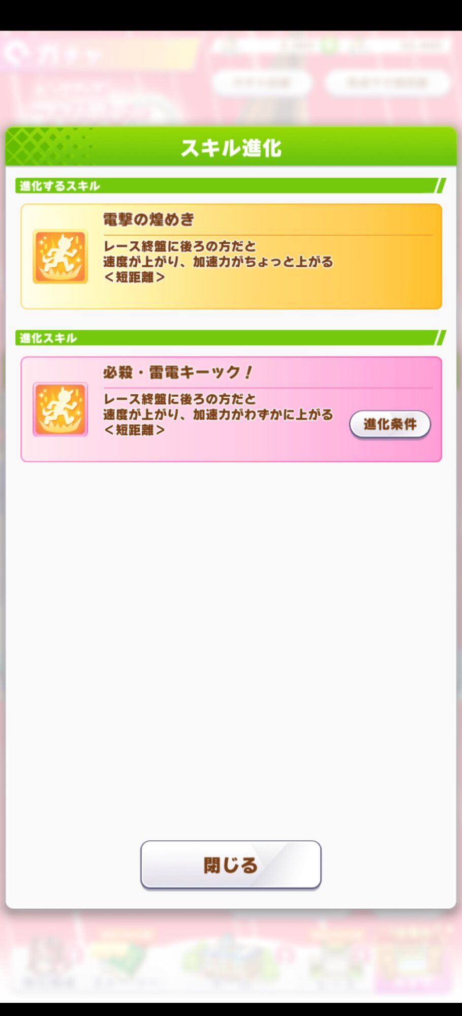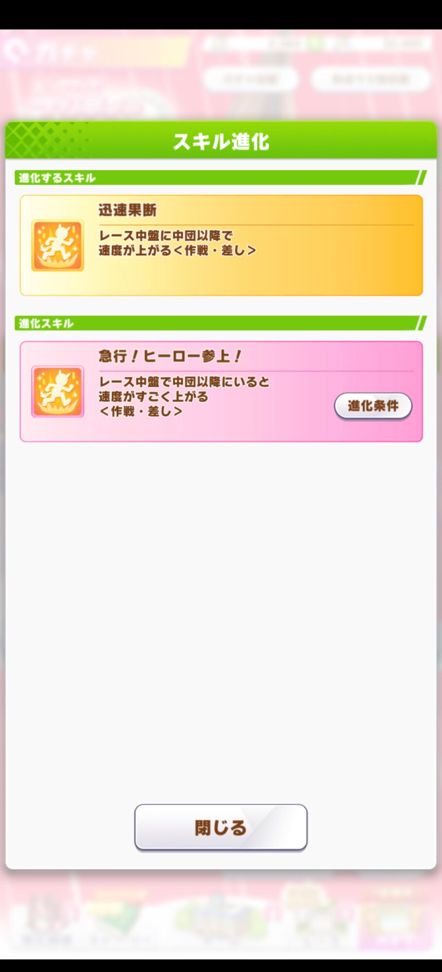 煌めきはね 速度部分が有効になる頃に発動順位圏内にいたら勝ち目なさすぎるし 進化込みでもワンチャン白加速得られるかどうかでどう考えてもスキポに見合ってない