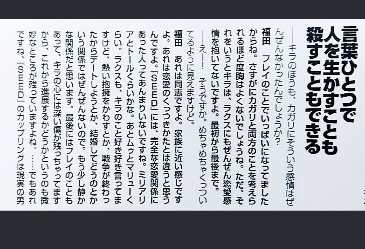 種時代にこれだけじゃ「えーそうなの⁉︎」ってなったと思うけど種自由で完成された関係になったというか諸々の発言が自分の中でしっくり来たからやっぱり映画できて良かったよ