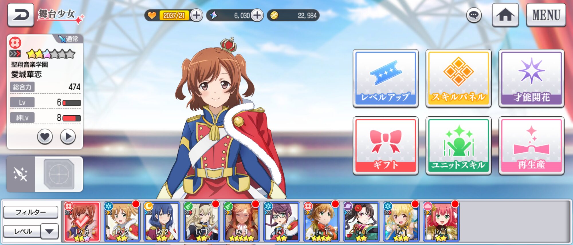 各舞台少女にギフトあげると絆ストーリーが解禁されるからそっちも楽しんでいってねー!
