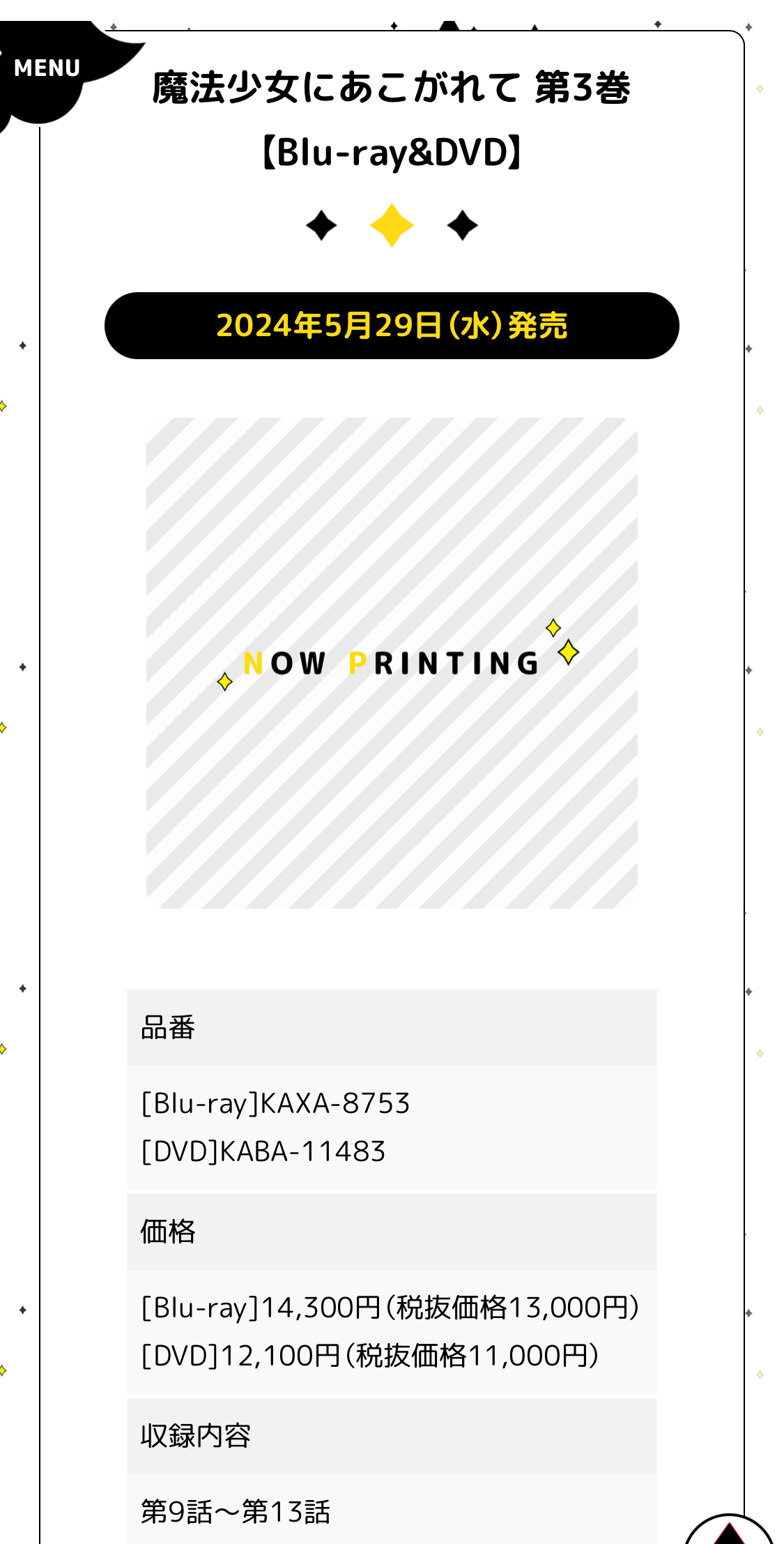 - 17二次元好きの匿名さん24/02/22(木) 13:37:08魔法少女にあこがれて 8話感想スレ|あにまん掲示板水曜 23:30 AT-X《あこがれVer.》水曜 24:00 dアニメストア水曜 25:30 TOKYO MX/BS11/サンテレビ水曜 26:00 KBS京都土曜 24:00(3日後) U-NEX…bbs.animanch.com魔法少女にあこがれて 第58話|あにまん掲示板今日更新PM12:00https://storia.takeshobo.co.jp/manga/mahoako/bbs.animanch.com魔法少女にあこがれて 第58話感想スレ②|あにまん掲示板2スレ目https://storia.takeshobo.co.jp/manga/mahoako/bbs.animanch.com