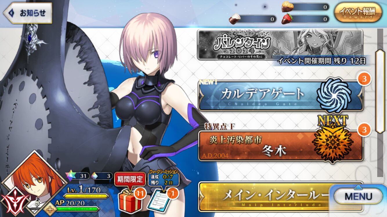 とりあえず早く冬木を終わらせてバレンタインイベントをプレイするのだ