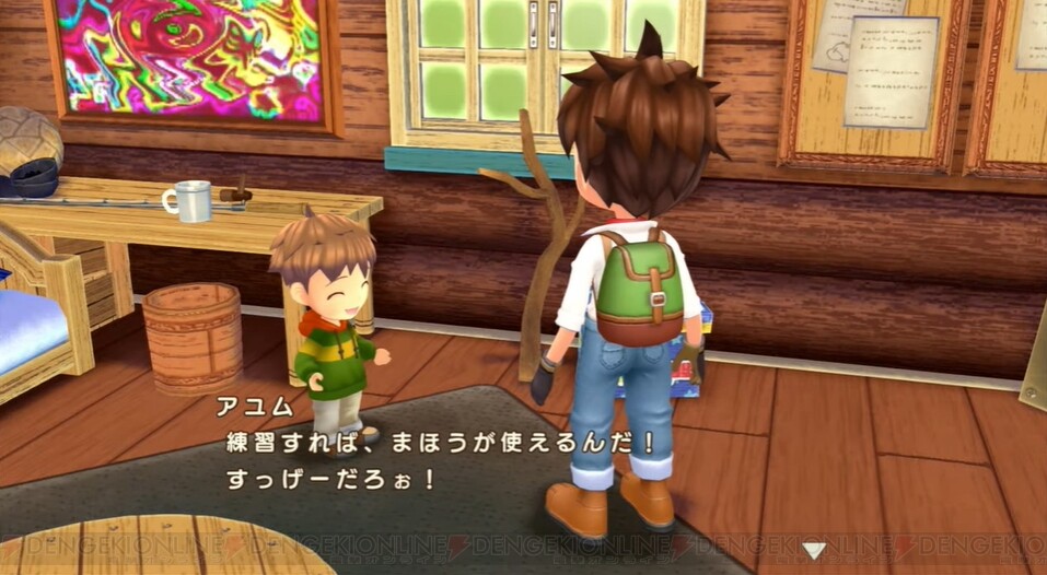 村を回り終えたら牧場に戻り、子供と一緒に牧草の刈り入れをします