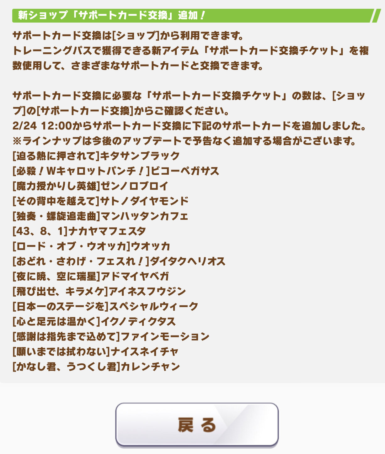 スピサポスタサポ以外にロクな手札が揃ってない自分としては、パワーウオッカや賢さファインを容易に入手できるというだけでも凄いありがたいんだよ今回の追加要素…