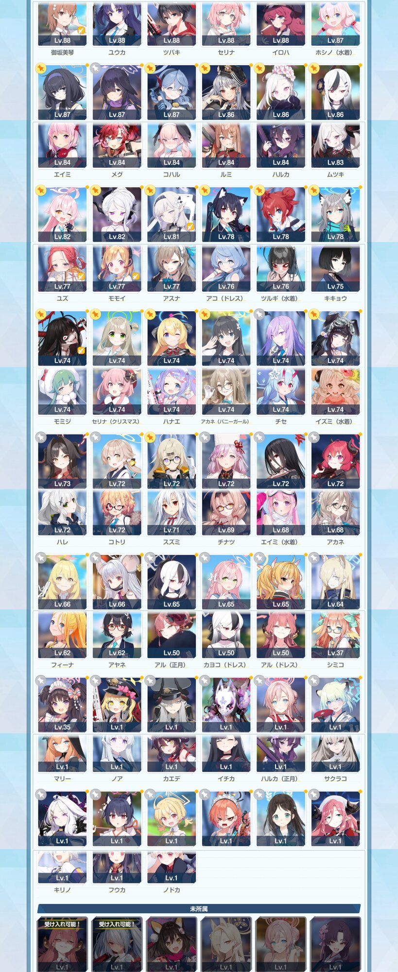 まあケセドの範囲アタッカーはそこまで星上げしなくてもなんとかなるしイオリ、モモイ、スミレ、ツルギあたりは固有3にするのも比較的楽だし本体火力は自前のグラサンミカでなんとかなるのん