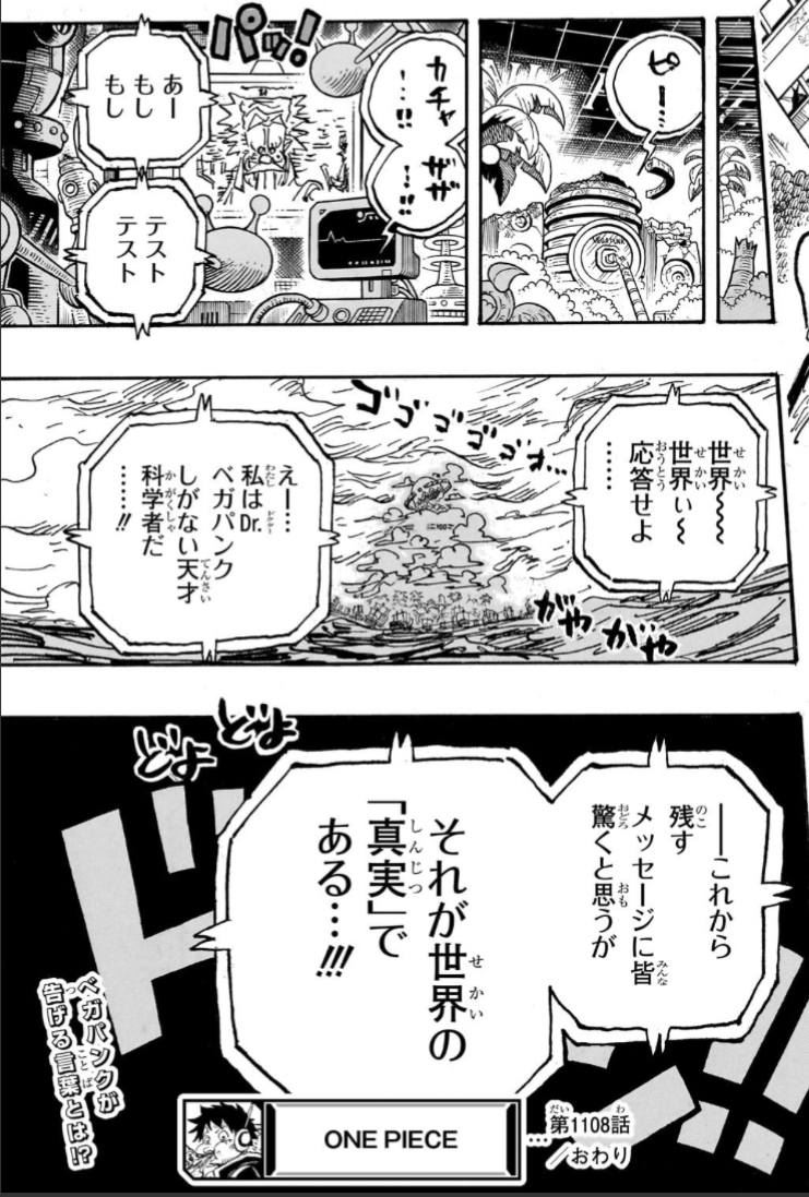 そりゃ今回ベガパンクが暴露する情報が作中の住民にとっては衝撃的でも読者にとってあまり驚くような事だとは限らんけども。 - 52二次元好きの匿名さん24/02/26(月) 18:27:18