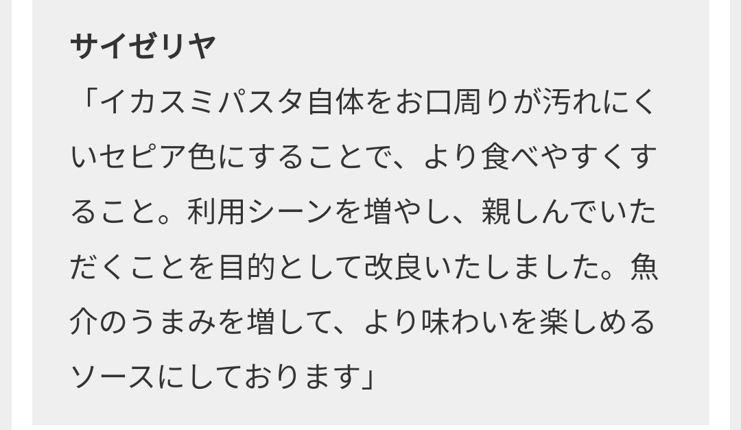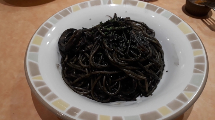 イカ墨の味は薄くなった反面…具のイカは柔らかく美味しくなっている!