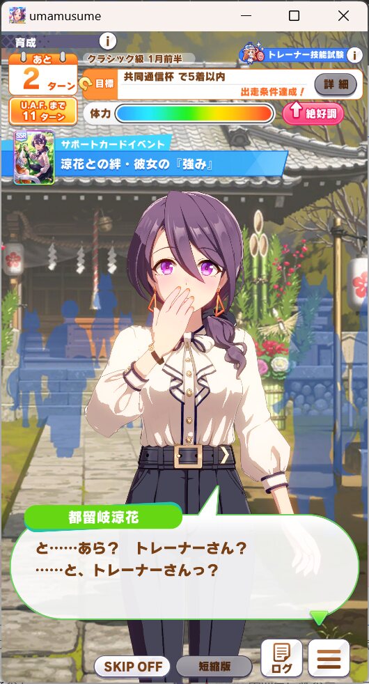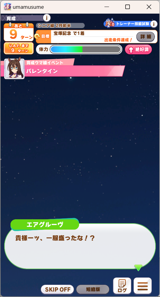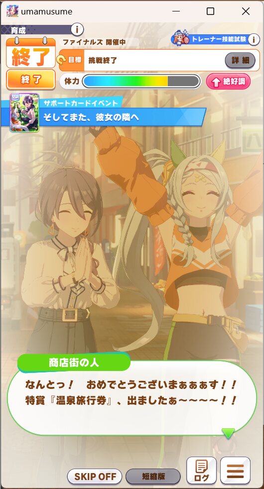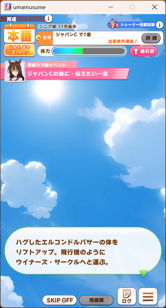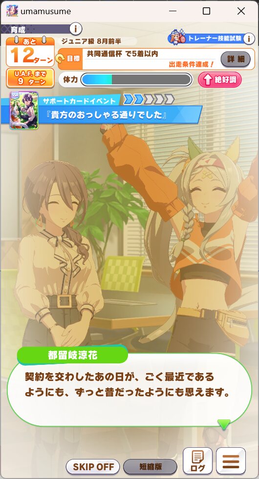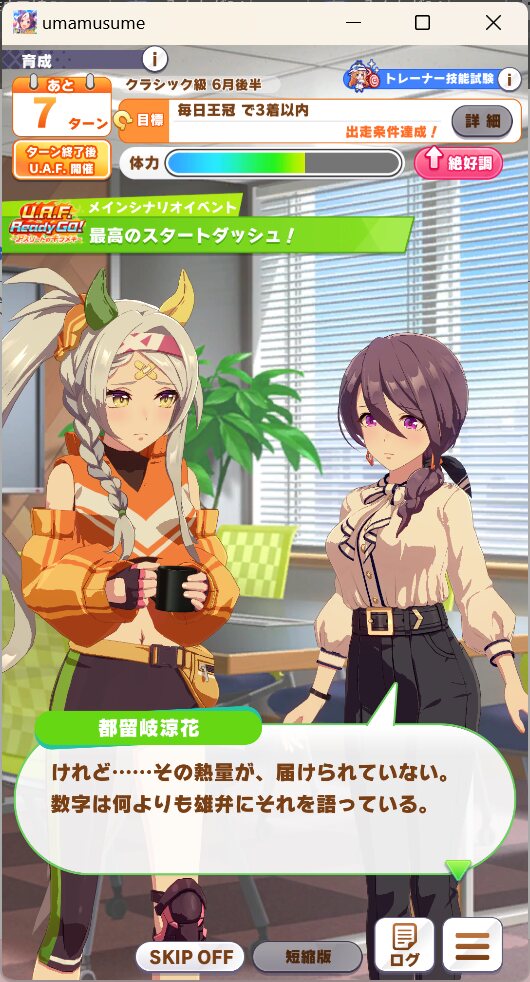これでこのシナリオに不向きの短距離だから、マイル中距離ならうまくいけばUEいけるかも