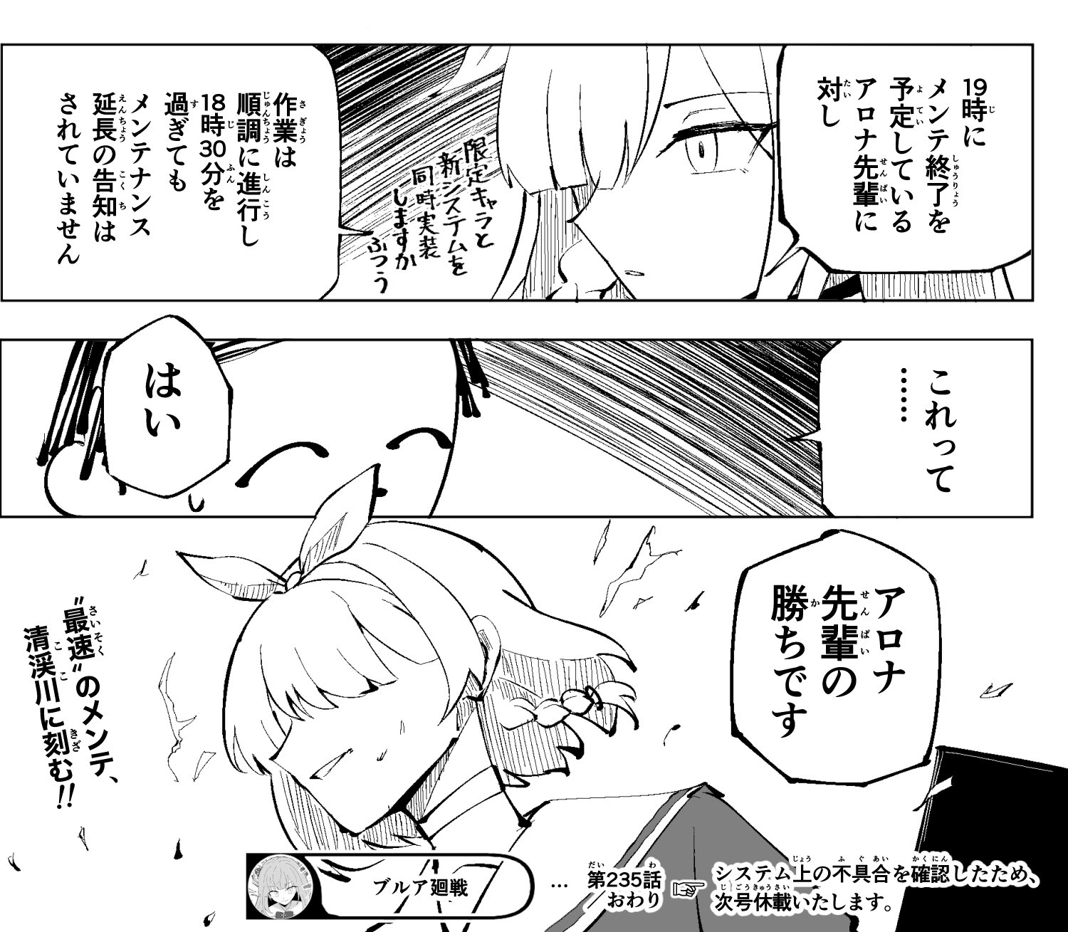 おうこの前のメンテの結果言ってみろやアロナァ