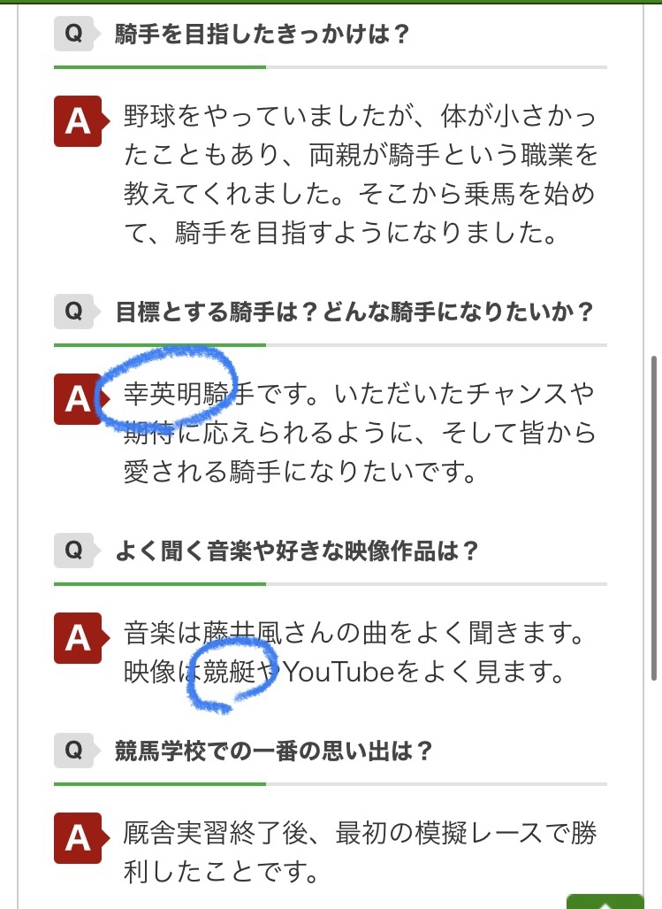 長浜くんはほら…師匠の根本調教師がダービー勝ったとき乗ってたメリーナイスってどんな馬だろうって理由だから…