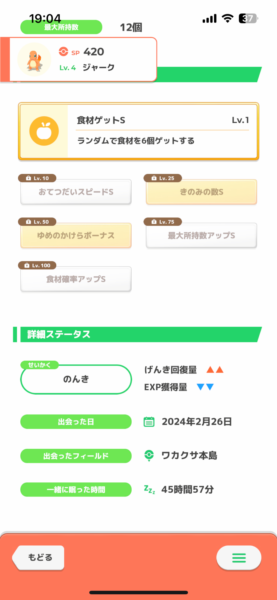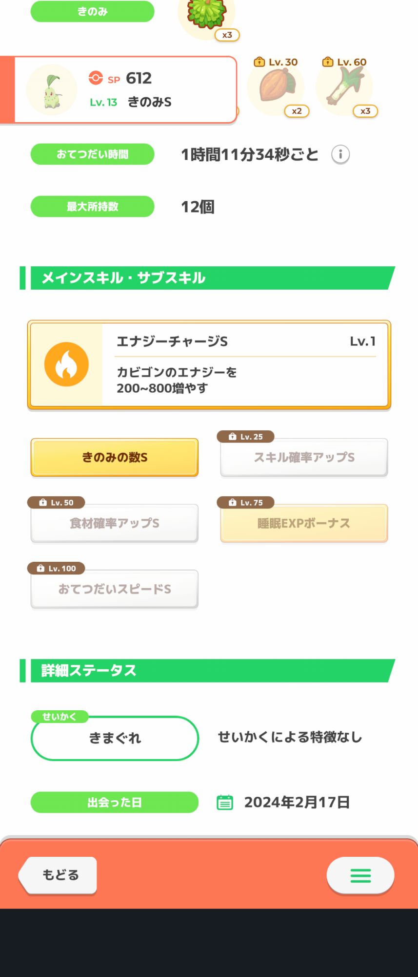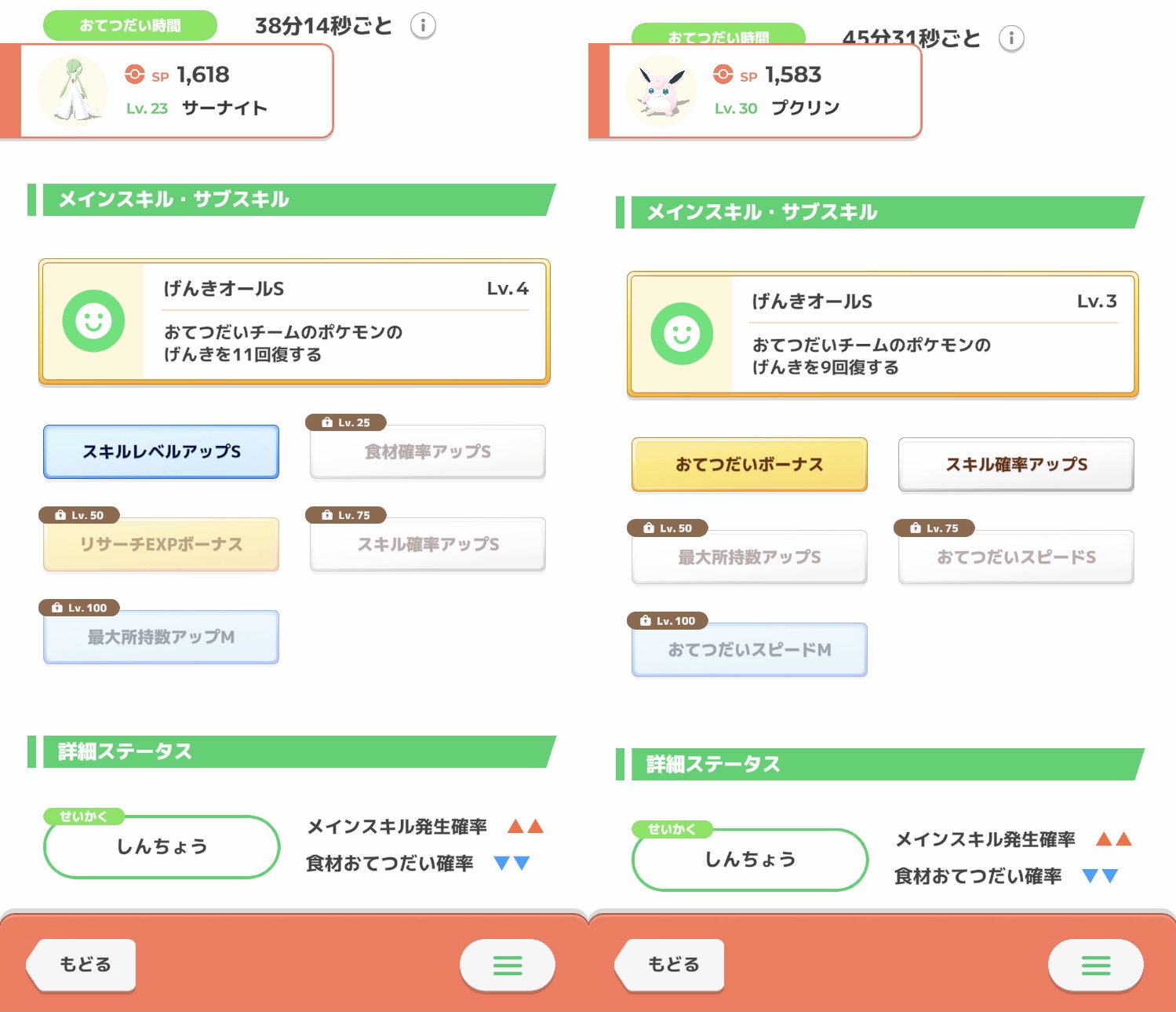 右は食材確率Sなので使うなら銀種必須で進化28レベルと遠いので、焦らず飴集めがてら厳選をして他に良いのがいなかったら採用かな