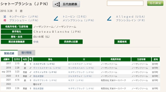 白毛遺伝子の致死作用説が事実か確かめるためにカミノホワイトと白毛同士で交配実験ずっとしてたって話でスタッドブック確認したら、カミノホワイトが何度も流産してミサワボタン産んだと同時に亡くなっちゃってるっぽいので産まれはするけど健康面であんま良い組み合わせではなさそうって感じ受けちゃうから、白毛同士の交配が危険が有るイメージ持たれてるのもこれが原因だったりしない?って思ってしまった