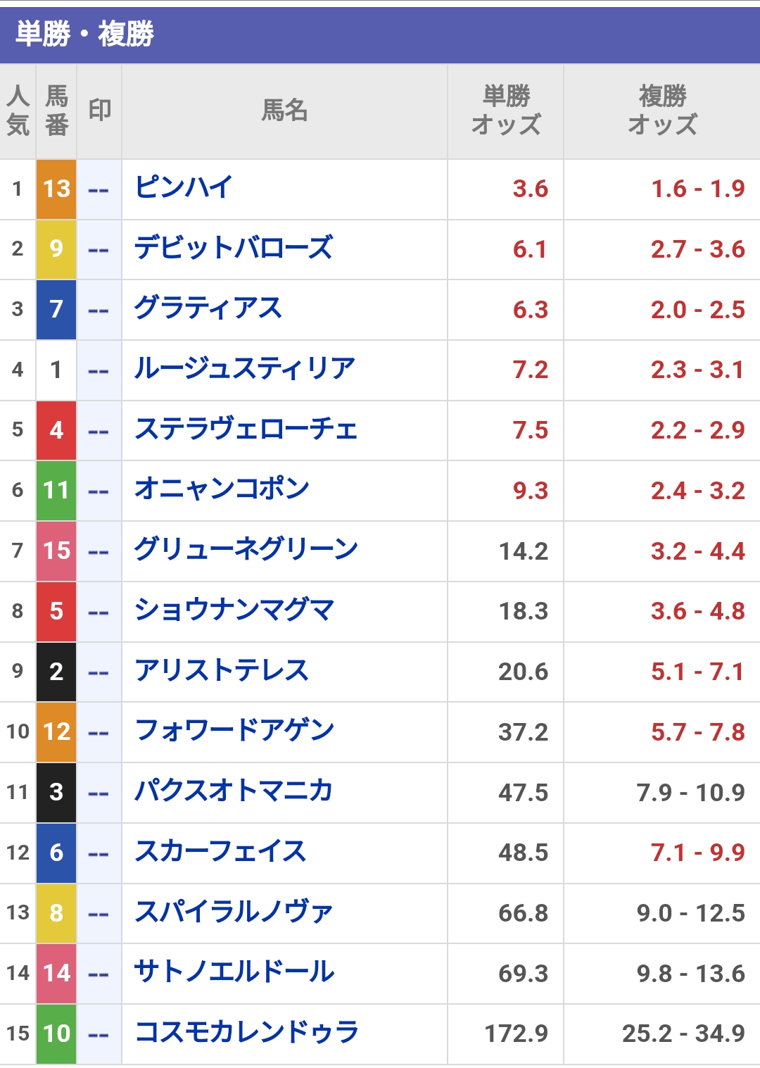 久しぶりの勝利って、このメンツほとんどの馬どれが勝っても久しぶりの勝利やな⋯