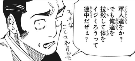 チン堕ちした髙羽に自分を守らせて逃げ延びようとする軍人VS羂索かあ