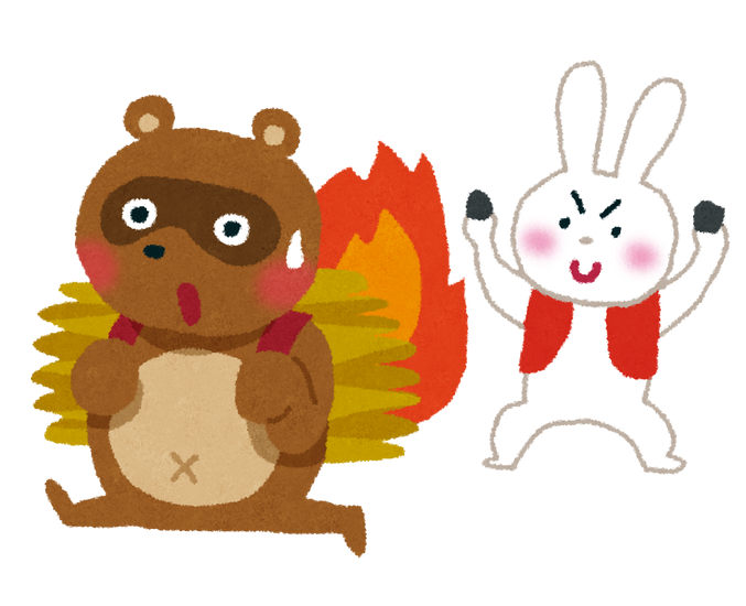するとみるみる内にカゴ内の松ぼっくりに燃え広がり、タヌキの背中は大火事になっていた。