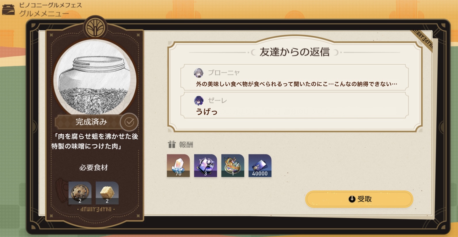 料理イベントは今の所