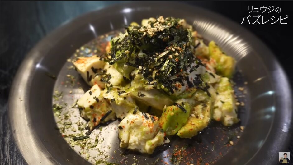 ②塩昆布3g、醤油12g、味の素1g、ごま油10gを①の上からかける