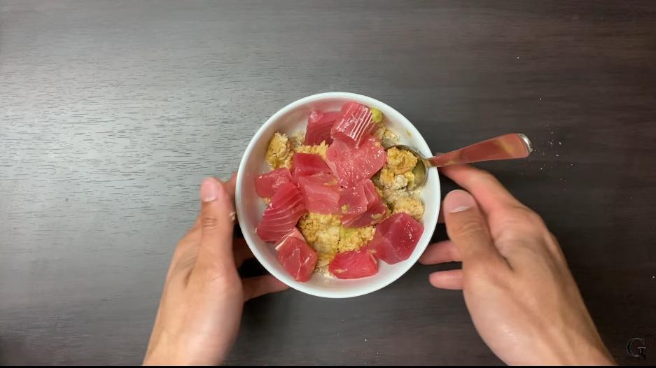 ⑤ご飯200gに④を乗せて完成