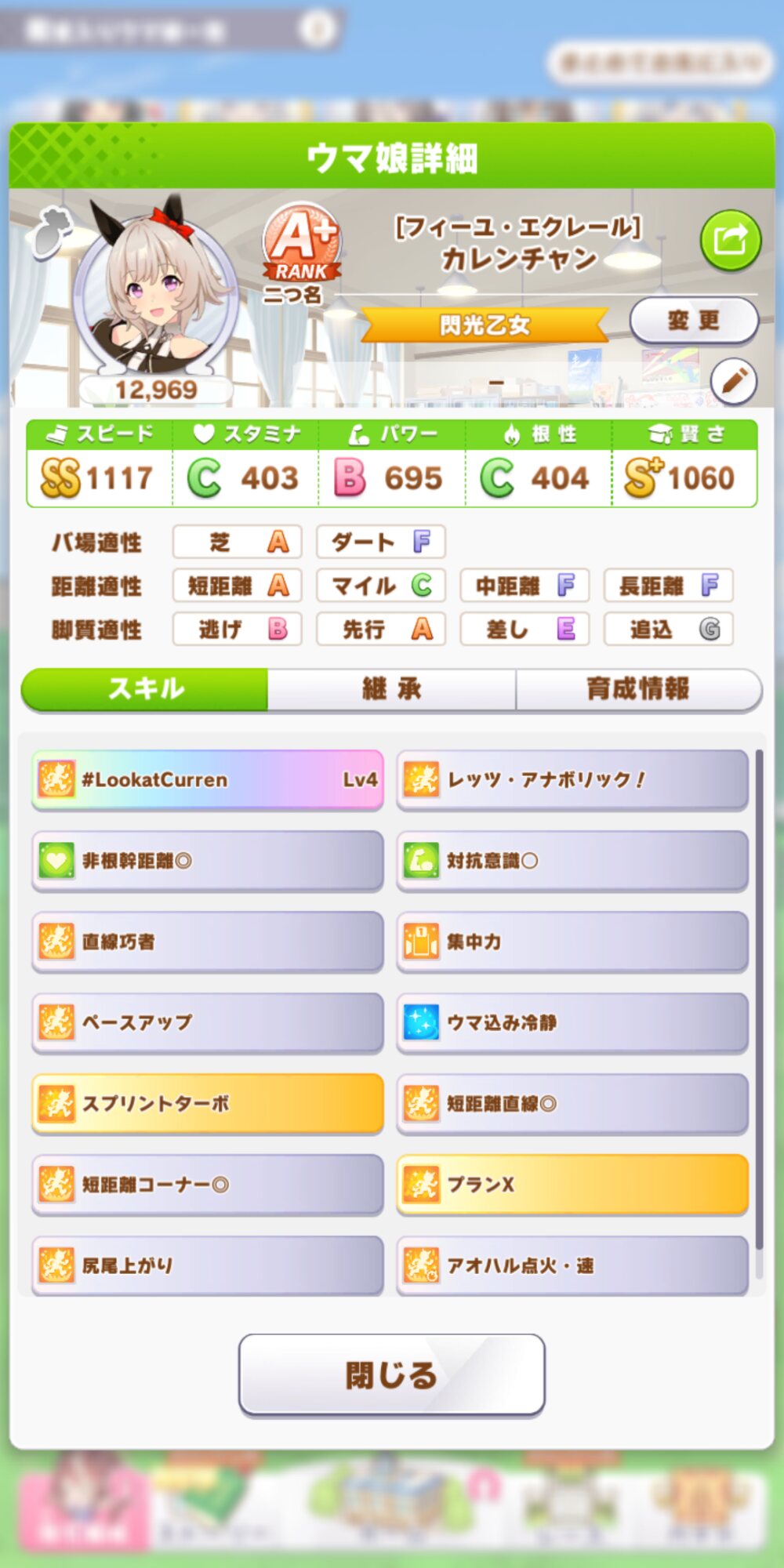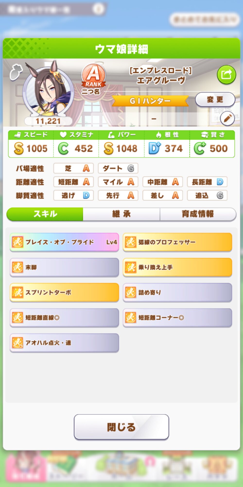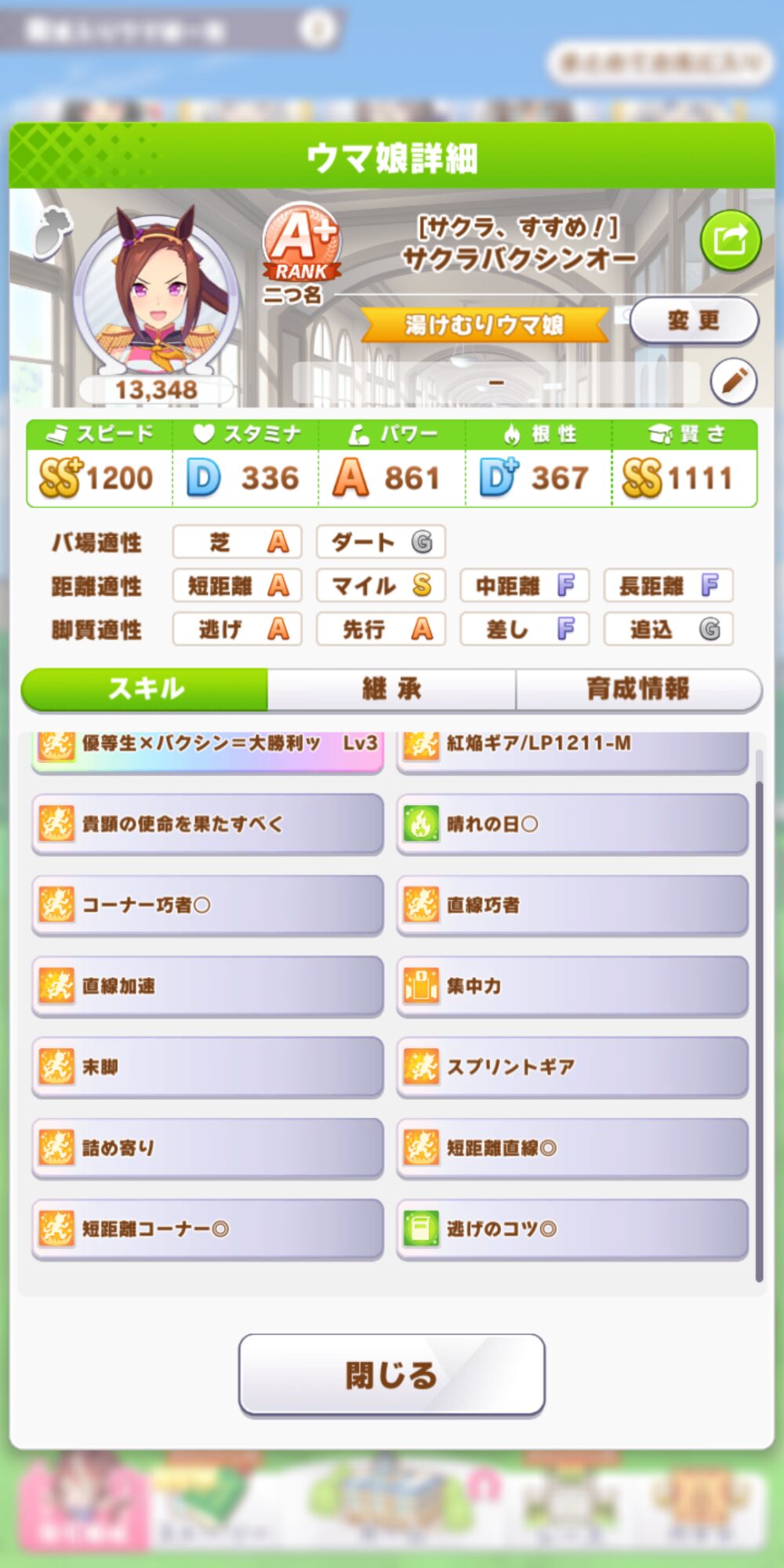 バクちゃんですら噛み合ってないスキル構成だから無理(末脚役に立たないし詰め寄り晴れの日は無駄)