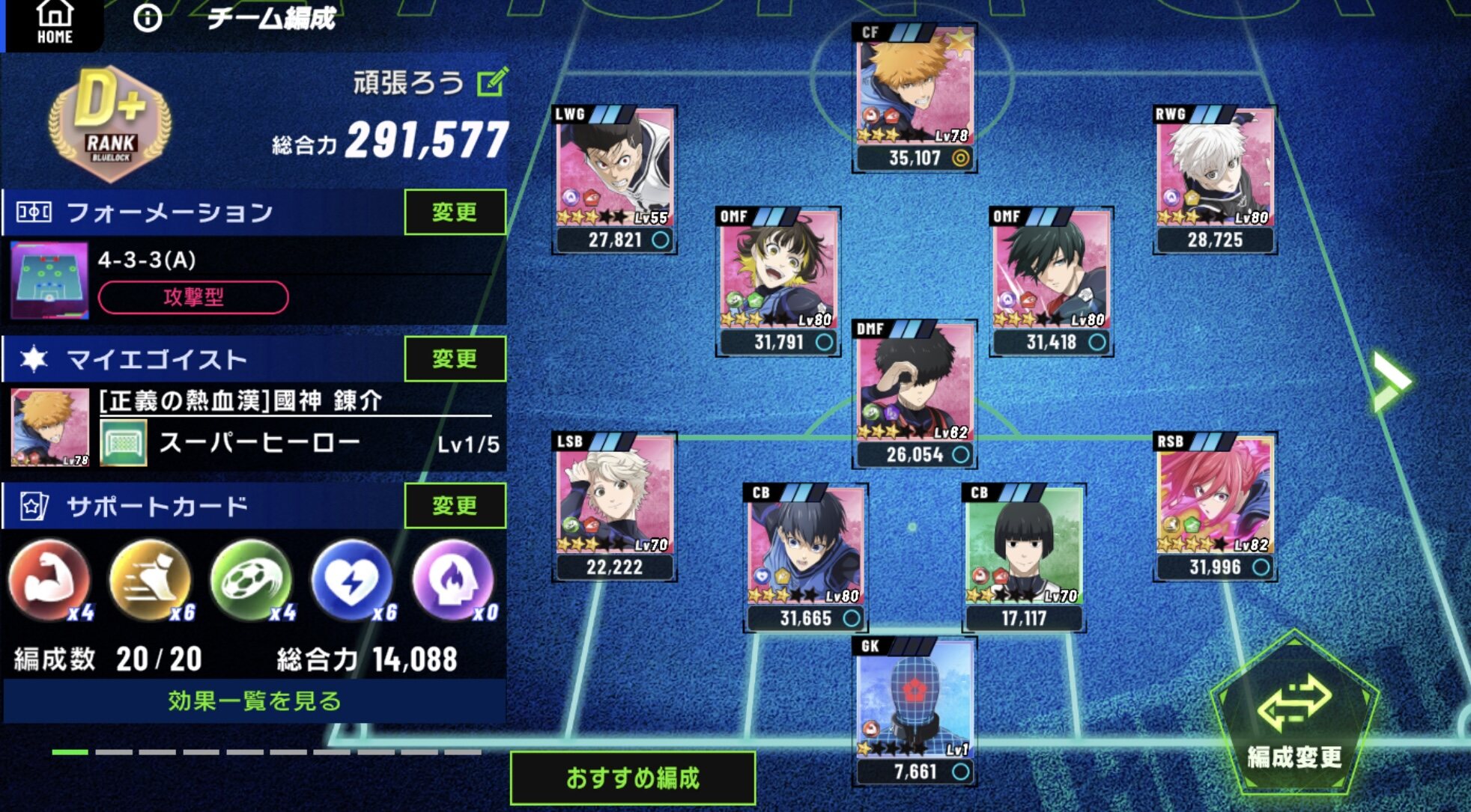 星4凛、潔と星3玲王、千切で戦力25000ぐらいなんだけど
