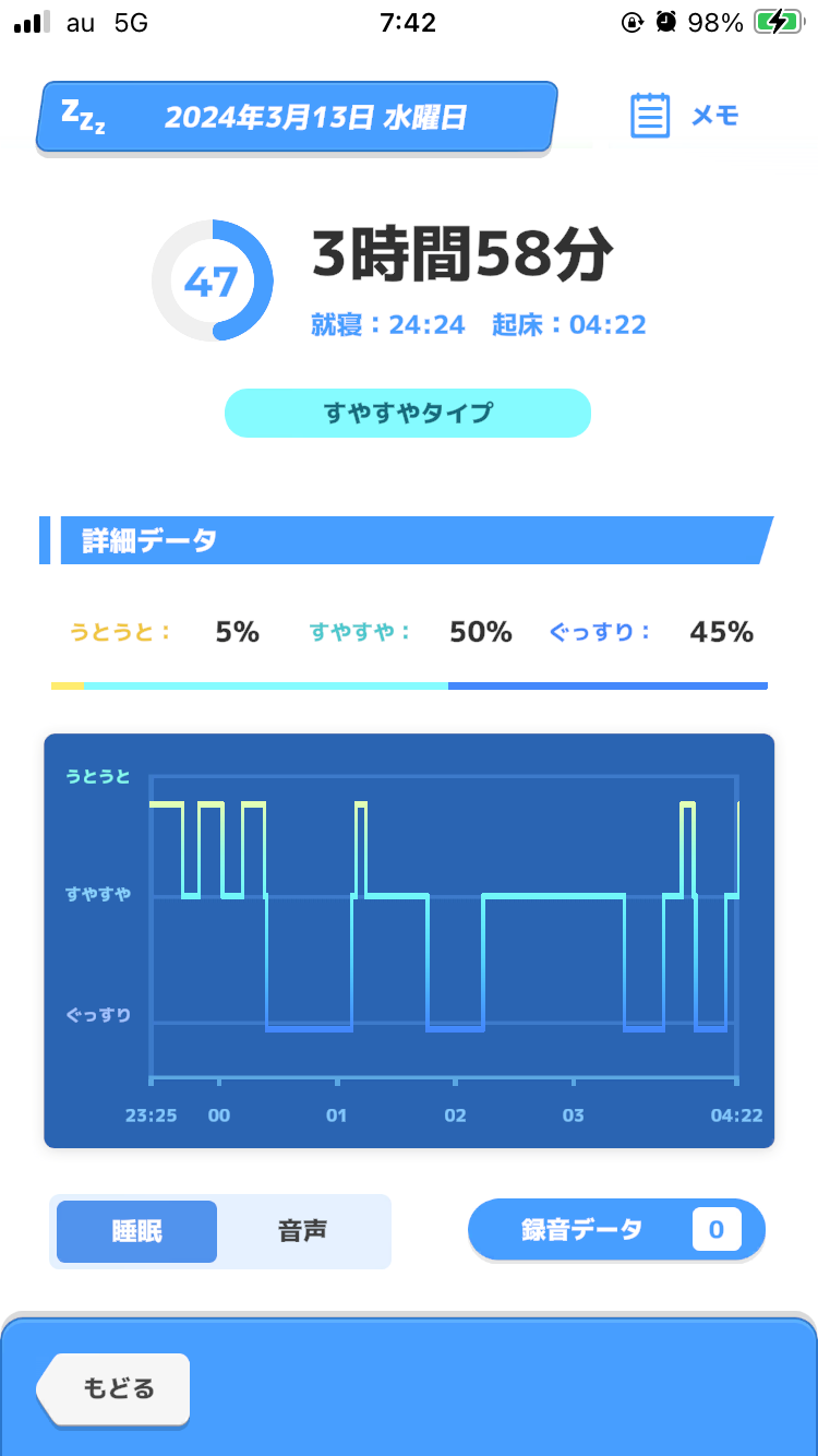 ポケモンGOプラプラで計測始めたんだけど、睡眠時間の最後1時間30分くらいエラーがでて削られる…
