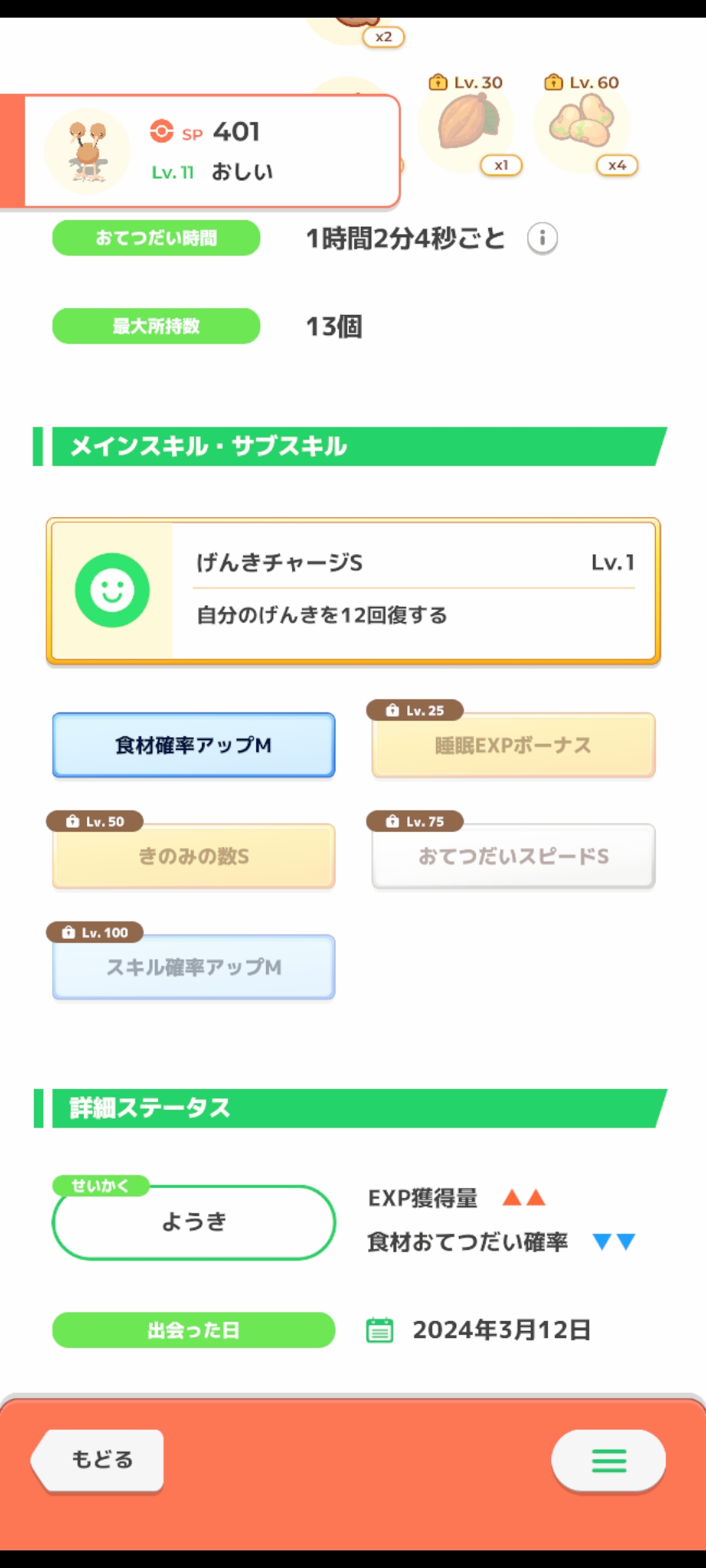 - 144二次元好きの匿名さん24/03/13(水) 14:22:49あんまりポケスリりかいできてないんだけど一般的に食材タイプスキルタイプでのきのみSって微妙?