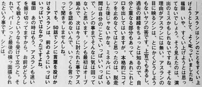 そういう意味ではシンが反骨精神の塊だからこそアスランが踏み込む余地があったというか、これがレイみたいな表面上は命令に従って反論するにしても軍人の心得みたいな否定しにくい言い訳を用意するタイプだったらどうしようもなかった