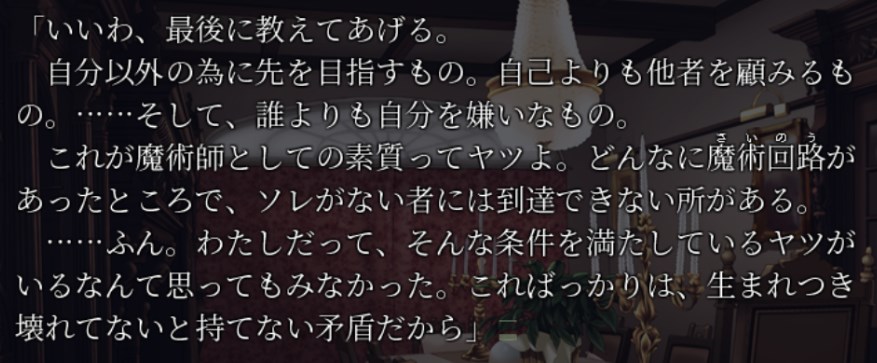 周りを見下すのは生来の性質だろうし魔術師として大成しても凛みたいな心の贅肉の付き方はしなさそう