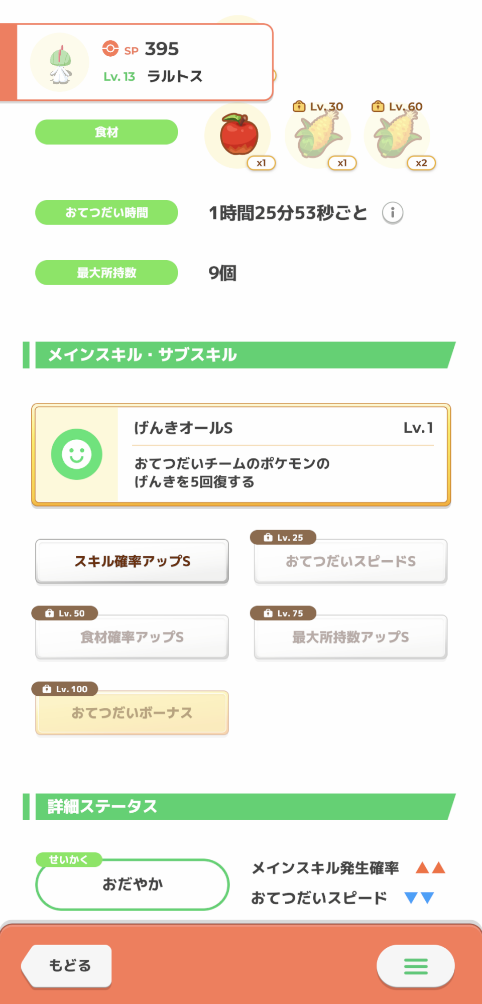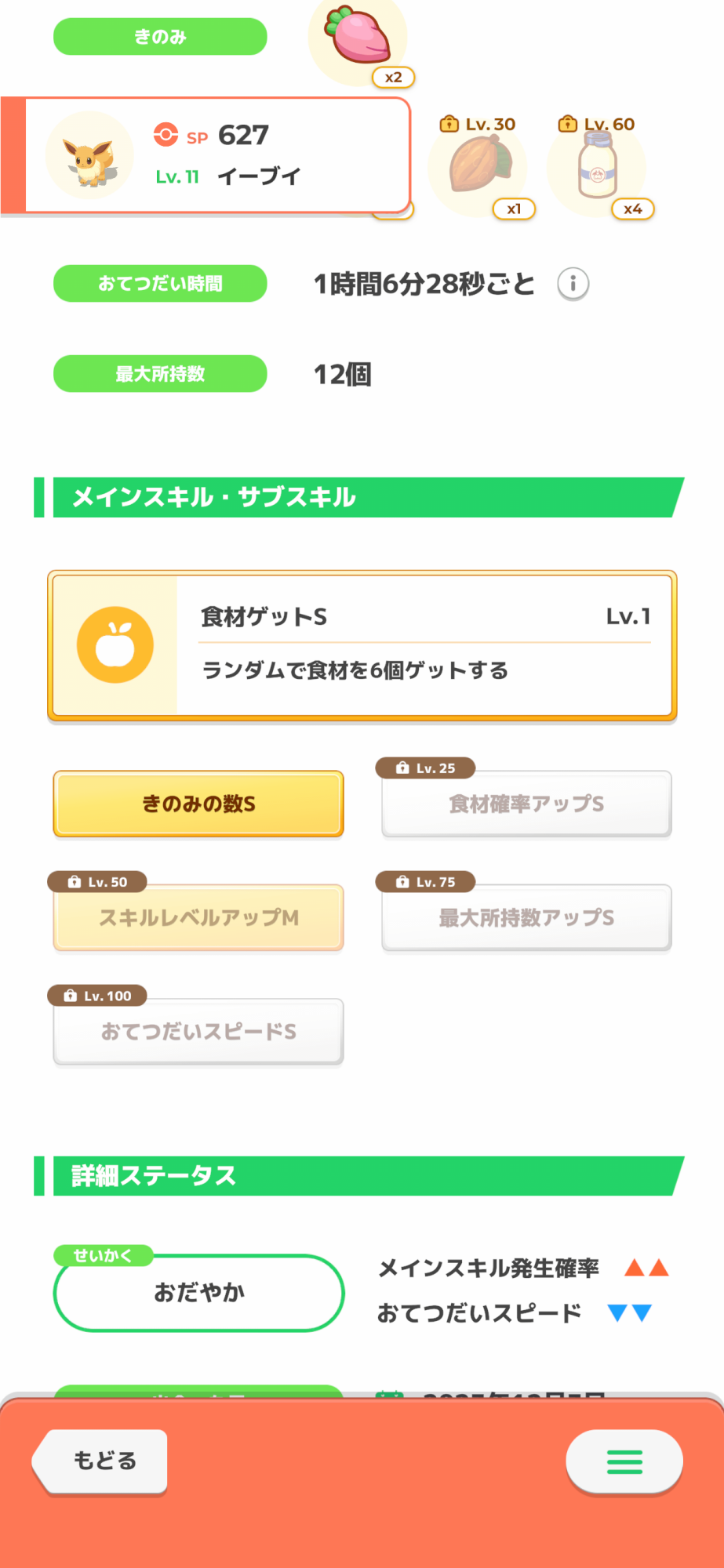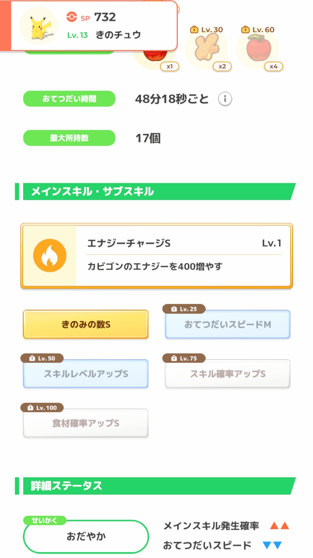 スキル確率アップを性格でダウンさせるマッチポンプだったり、やたら食材持って来たりなかなかいいメリープが来てくれない寝…