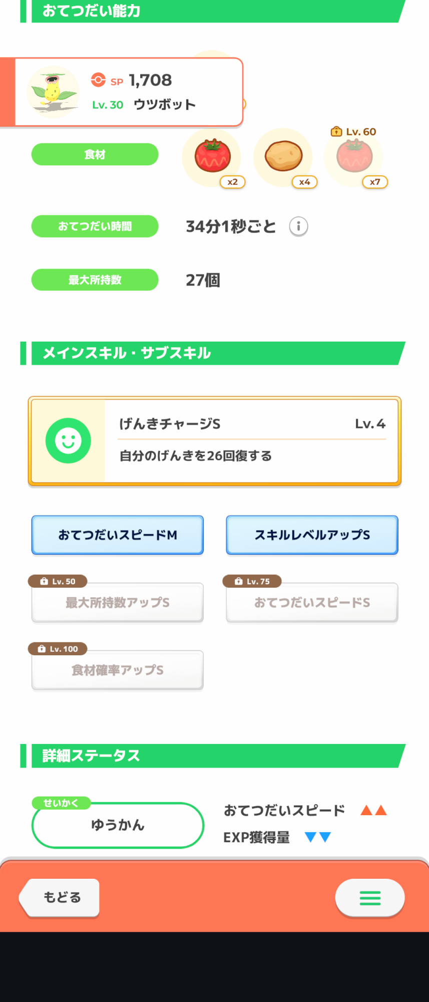 デデンネ並べてスキル連打するのが料理稼ぎの最高効率だろうし、レベル上げながら2体目以降の厳選続けるだけいいのでは?