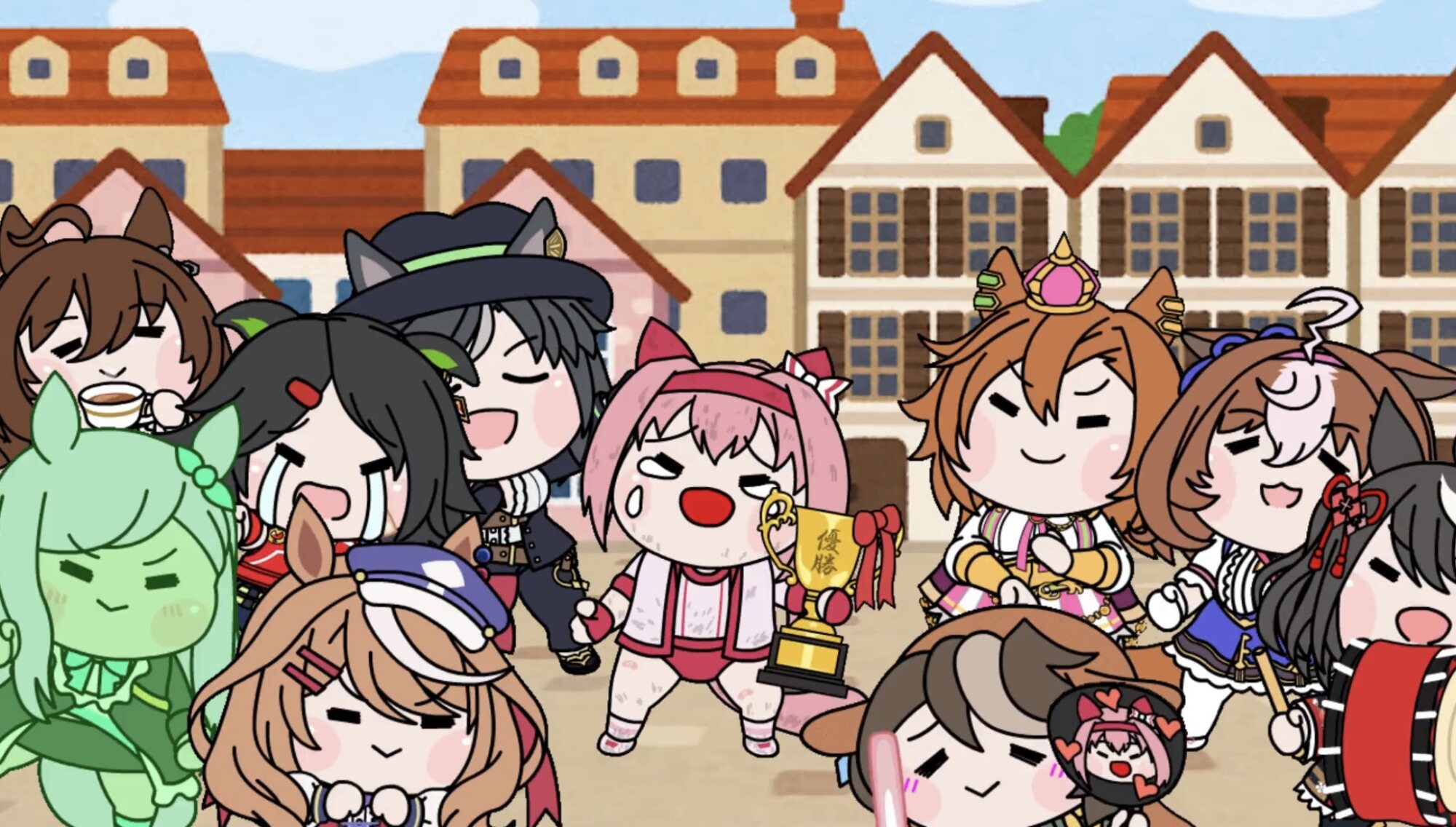 レインボーロードでウララの一位祝福してるキングすき