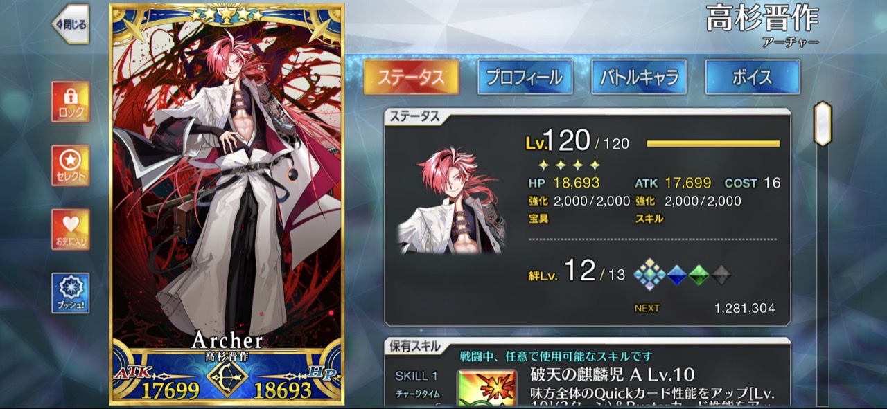 大体は強いサーヴァントを120にするだろうから趣味で趣味鯖を120まで育てる人いるのかね