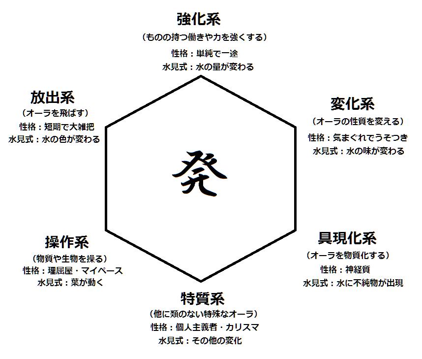 変化系能力は「怒りをトリガーにオーラを増やす」(増えたオーラを肉体変形に使っている)みたいなオーラ量増減の能力で。