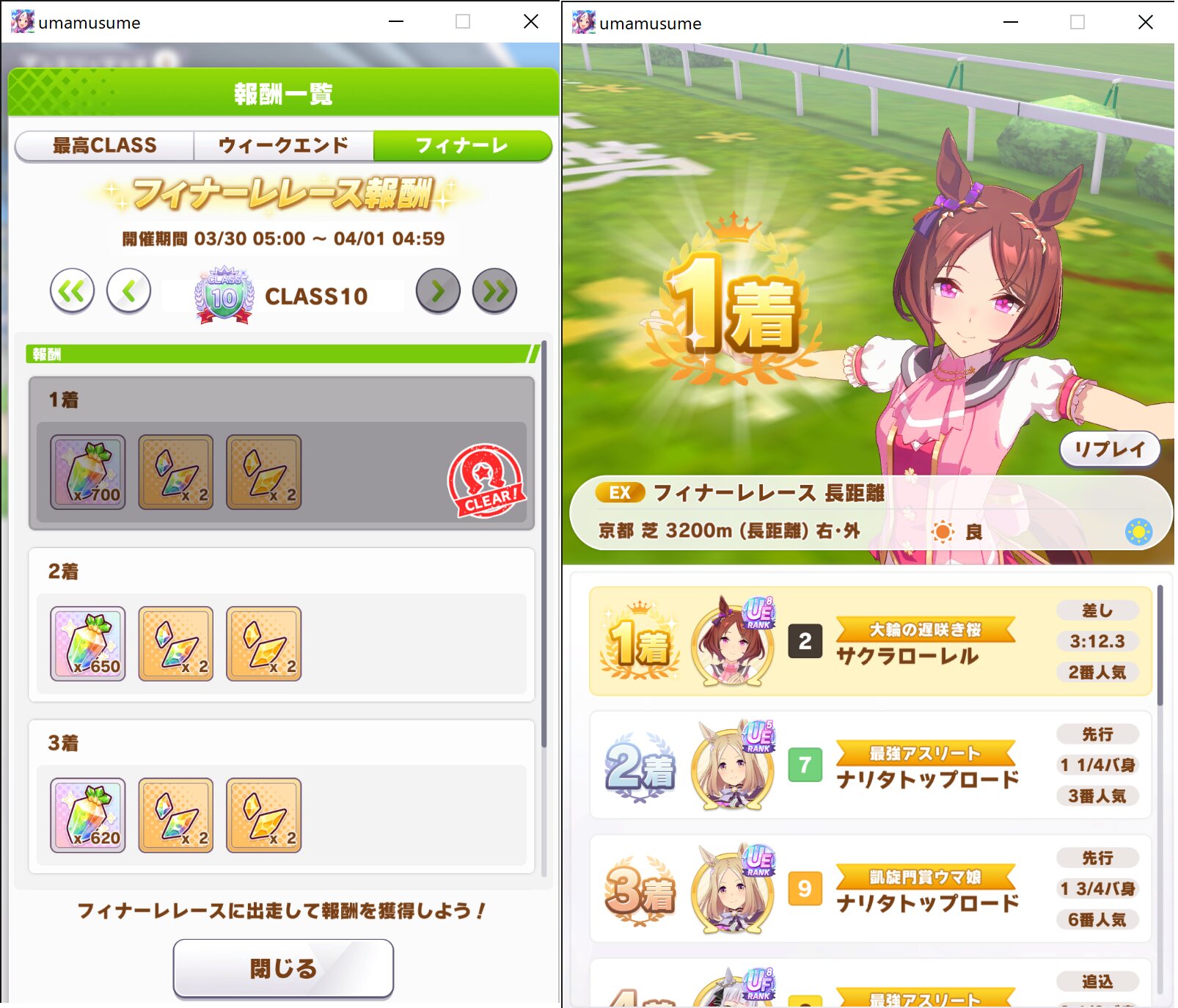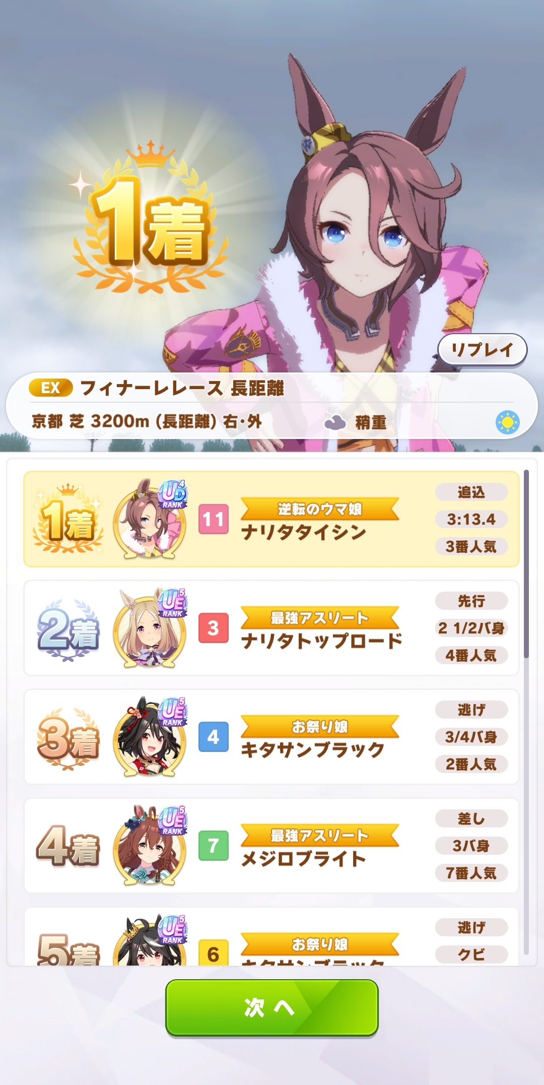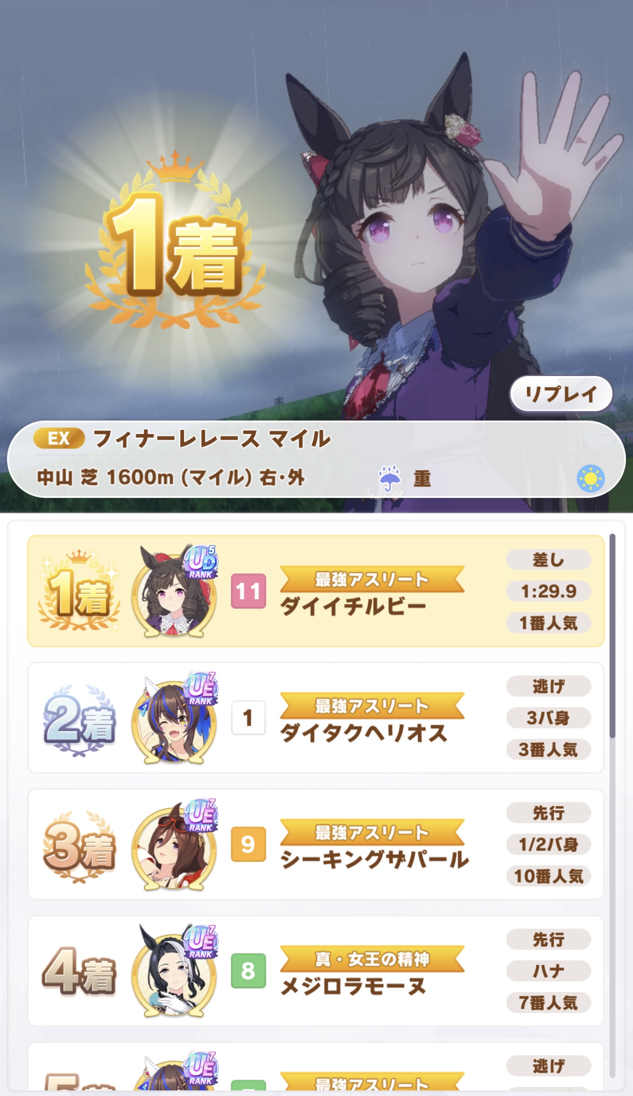 ランク10長距離だがUEまでしかいなくて大差勝ちしてしまったぞ