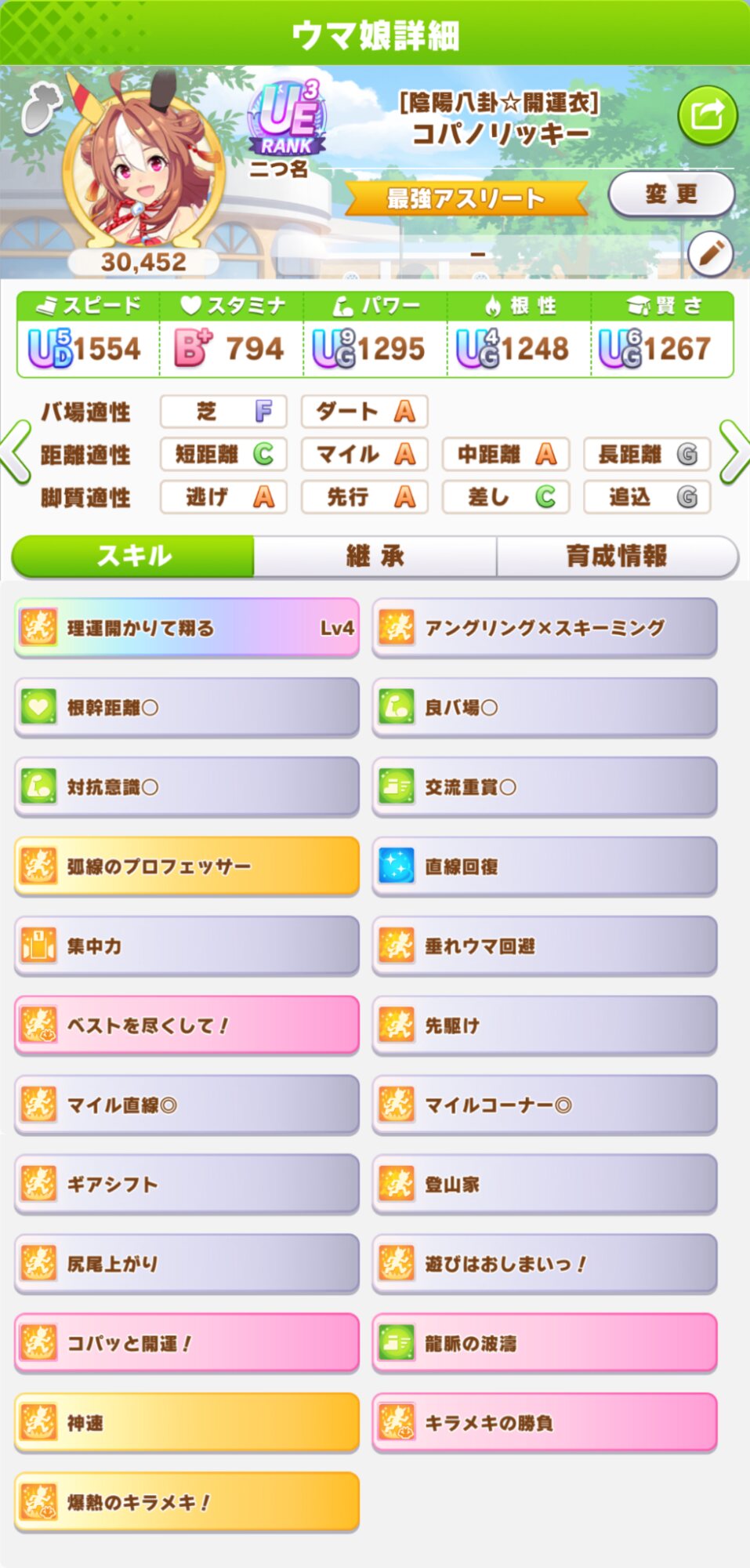 まあクラフトは距離適性広いから評価点育成の場合発動しないスキルも取って点数稼ぐってこともしやすいし、レースする上では必ず格上とも限らない
