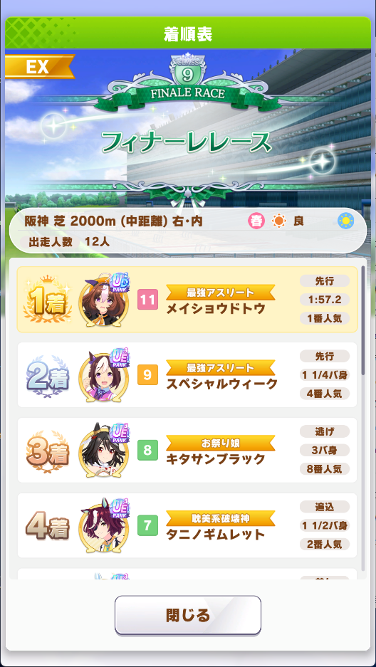 フィナーレは程良い難易度でいろんなウマ娘が見れて楽しかったです!ってご意見投げるか